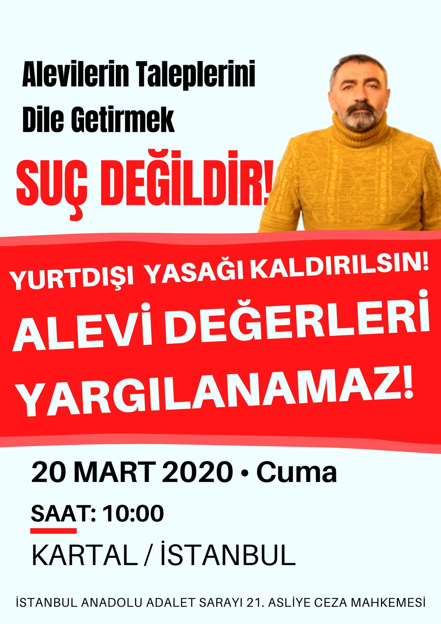 20 Mart’ta, Türkiye‘de ki Alevi ve Sivil toplum kurumlarındaki Başkanların, üyelerin ve Cümle Canların duruşmaya kitlesel katılmalarını talep ediyoruz.