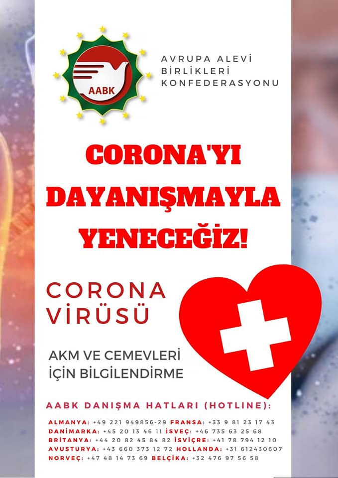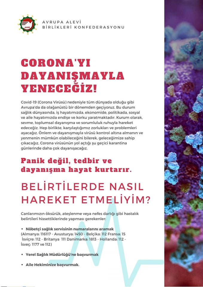 Avrupa Alevi Birlikleri Konfederasyonu’ndan (AABK‘dan) çağrı: Korona virüsünü önlem alarak, dayanışarak yeneceğiz!