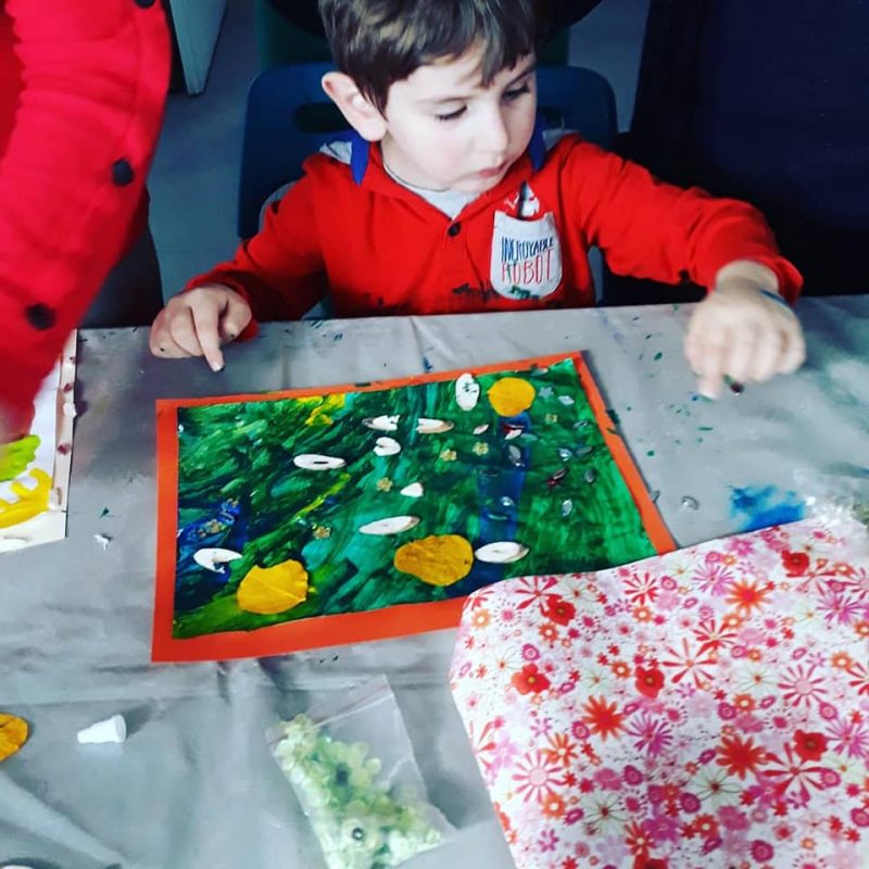 Ve son olarak en duygulandığım an; elinde yeşil boyalı resim olan sarı miniş 3 yaşında. İlk resmiymiş…İlk resmini atölyemizde yaptı. Hem de ressamı yorumlamaya çalışarak. Tek başına. Ve resmini duvara astırmadı. Sımsıkı elinde tuttu. Foto çekinirken bile. Alacağız diye çok korktu:)