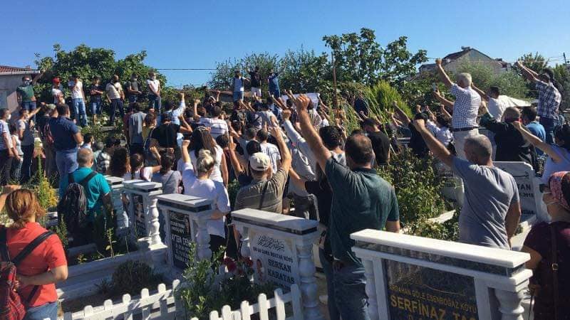 SLOGANLAR EŞLİĞİNDE MEZARLIĞA GETİRİLDİ