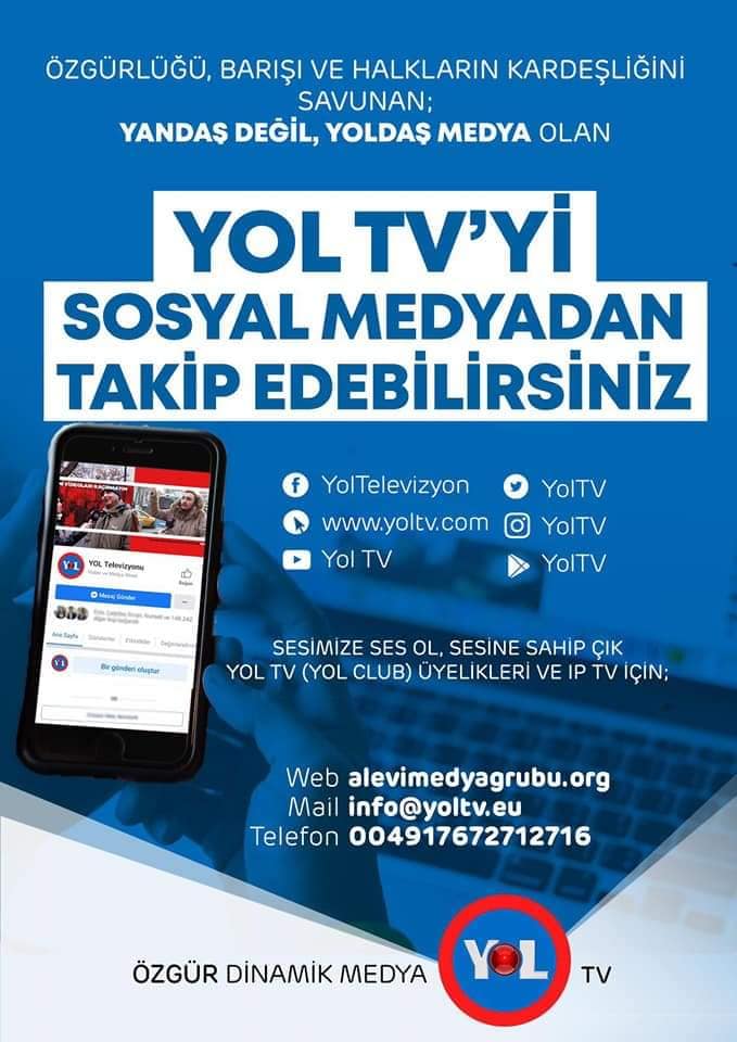 Alevilerin,emekçilerin, ezilenlerin, demokratların , devrimcilerin, kadınların, özgūrlūğe ve bilime sevdalı olan gençlerin, mazlum halkların, laik ve demokratik bir Türkiye isteyenlerin sesi olan Yol Televizyonu 15. yılını kutluyor.
