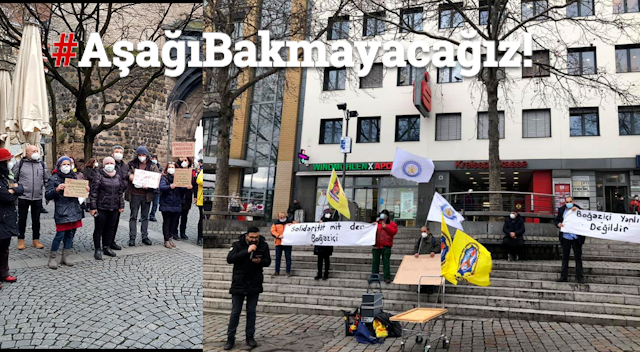 AHA – KÖLN AGİF, SKB ve YS tatafından Köln Wiener Platz’ta düzenlene dayanışma eylemine katılanlar hep birlikte Cev Bella marışını söylediler. Türkçe ve Almanca konuşmların yapıldığı dayanışma eyleminde “ Solidaritat mit der Boğaziçi’’ pankartı taşındı. Eyleme katılanlara Hızır Lokması dağıtıldı.