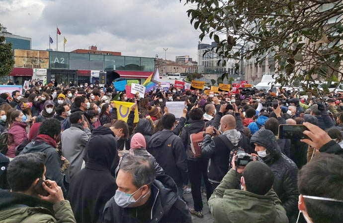 AKP’li Cumhurbaşkanı Erdoğan tarafından Boğaziçi Üniversitesi’ne atanan Kayyum Rektör Melih Bulu’yu protesto ettikleri için tutuklanan öğrencilerin davasından önce Çağlayan Adliyesi önünde toplanan öğrencilere polis müdahale etti.