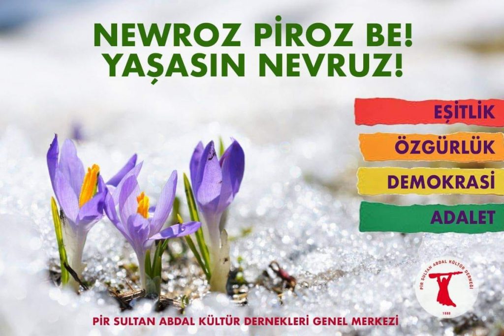 PSAKD Genel Merkez, yazılı bir açıklama yaparak Newroz Bayaramını kutladı. ” Newroz (Nevruz) aydınlığın karanlığa üstün geldiği günlerin başlangıcıdır. Newroz(Nevruz) doğanın uzun bir dinlenme ve hazırlık döneminden sonra baharla birlikte bütün güzelliklerini açığa vurduğu, yaşamın tüm renkleriyle ve çeşitleriyle, büyük bir ahenk ve uyum içinde doğanın her köşesinden fışkırdığı bir gündür” ifadelerini yer aldığı Pir Sultan Abdal Kültür Derneği ( PSAKD) açıklamasının devamında, şunlar kaydedildi: