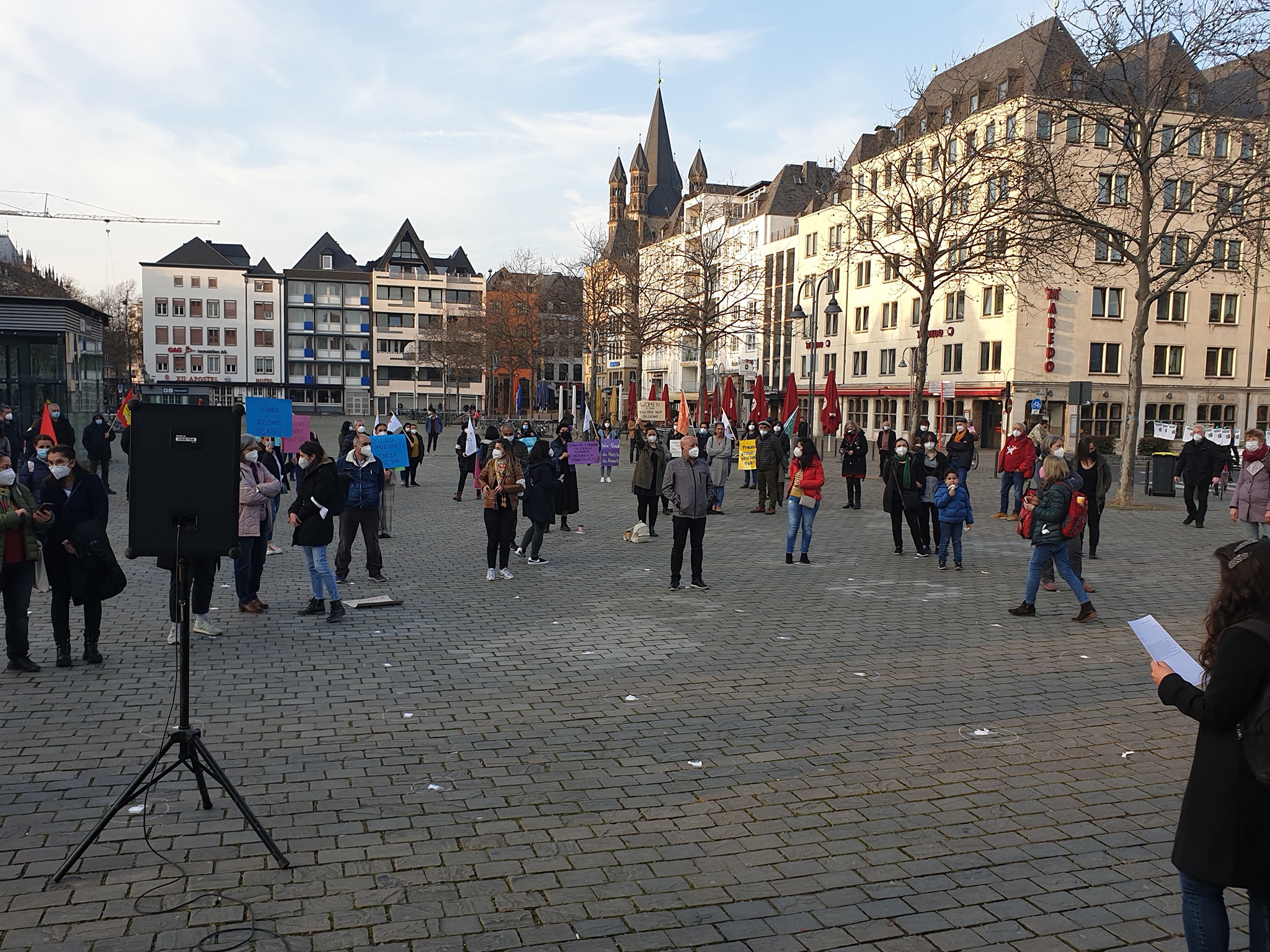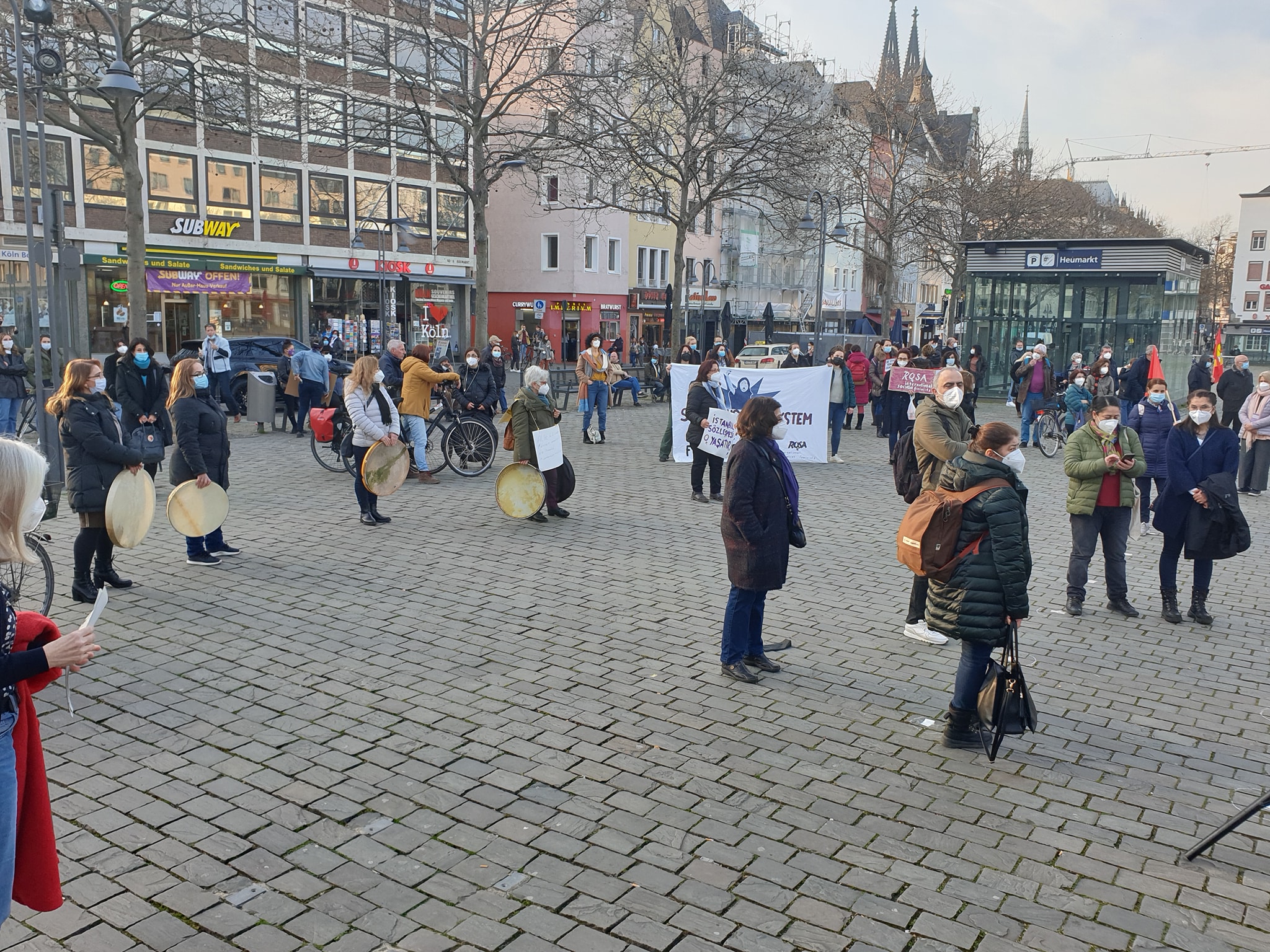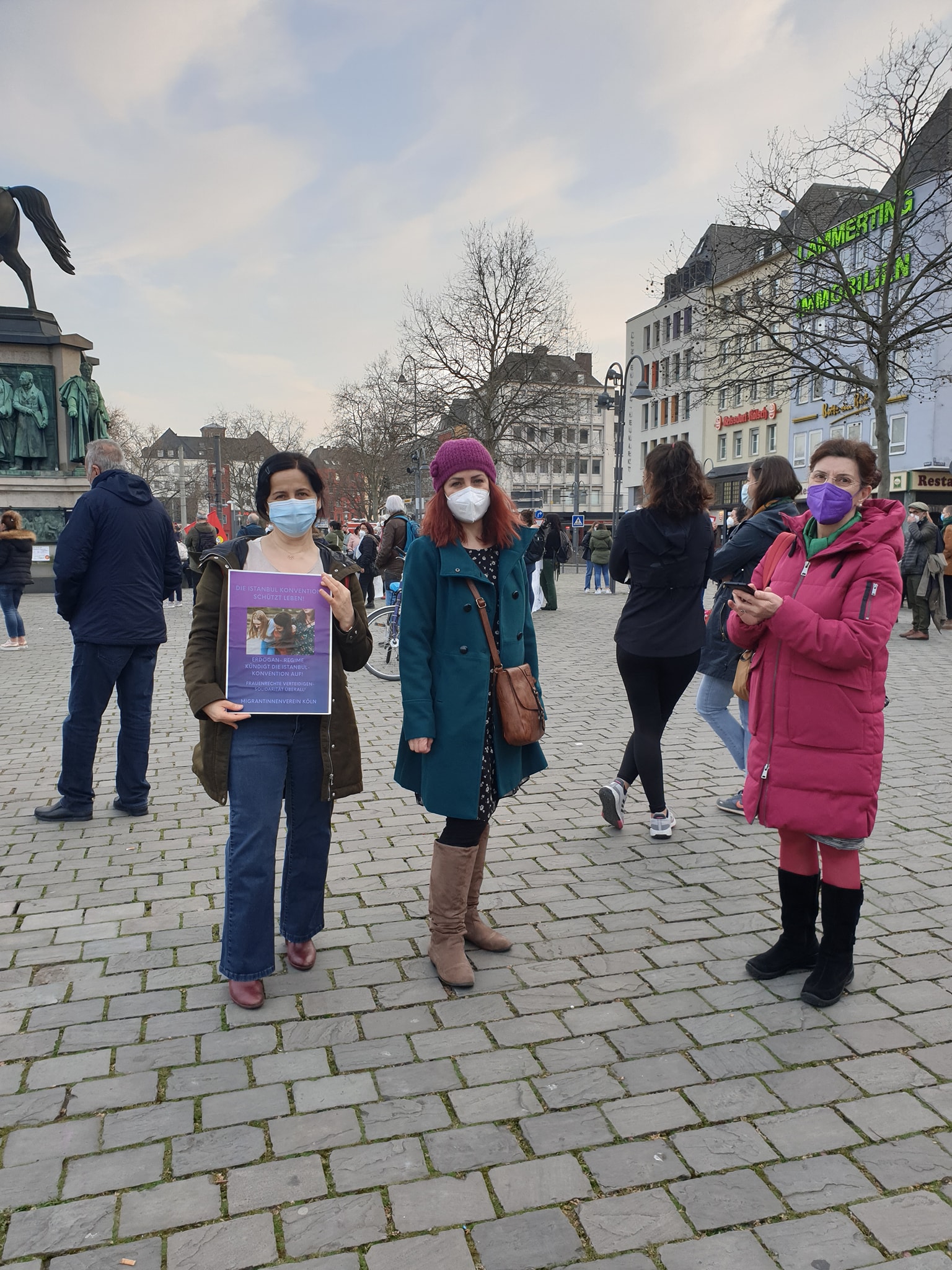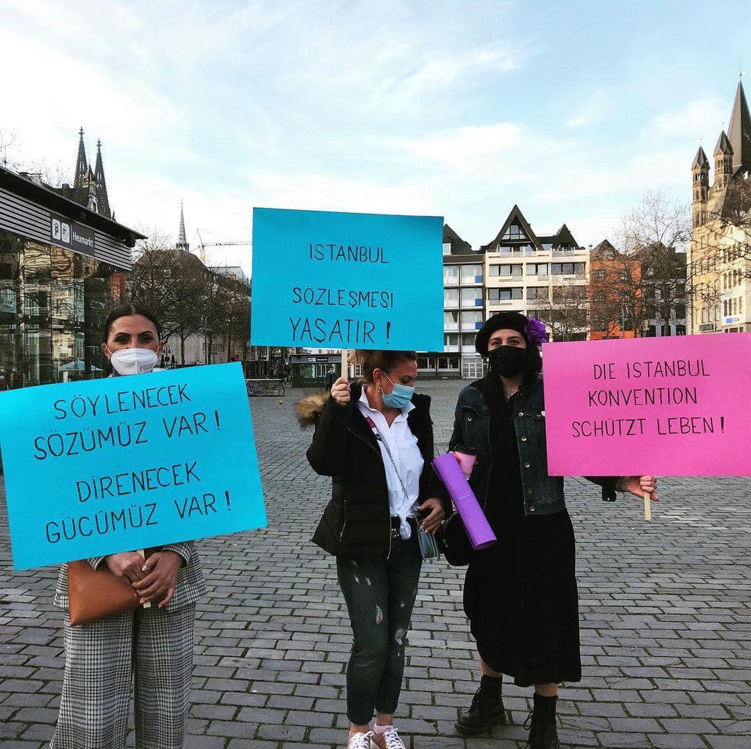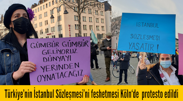 Göçmen Kadınlar Derneği’nin çağrısıyla 24 Mart Çarşamba günü Almanya’nın Köln kentinde’ki Heumakt Meydanı’nda 100’ün üzerinde kadın Türkiye’nin İstanbul Sözleşmesi’nden çekilme kararını protesto etti. Birleşik Hizmet Sendikası, Die Linke Partisi , DİDF, Göçmen Kadınlar Birliği ve Almanya Alevi Kadınlar Birliği ( AAKB) adına yapılan konuşmalarda Sözleşme’nin yeniden uygulamaya sokulması istendi. Mitingde Cumartesi Anneleri adına konuşan Aysel Ocak, Cumartesi Annelerine yönelik mahkeme kararlarını, 25 Mart’taki duruşmayı anlattı ve dayanışma çağrısında bulundu.