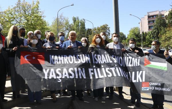 CHP Ankara İlçe Başkanı Fahri Yıldırım ve partililer, Çankaya ilçesindeki İsrail Büyükelçiliği önünde bir araya geldi. “Kahrolsun İsrail Siyonizmi yaşasın Filistin halkı” yazılı pankart taşıyan partililer, “Kahrolsun İsrail Siyonizmi”, “Filistin halkı yalnız değildir” sloganları attı.