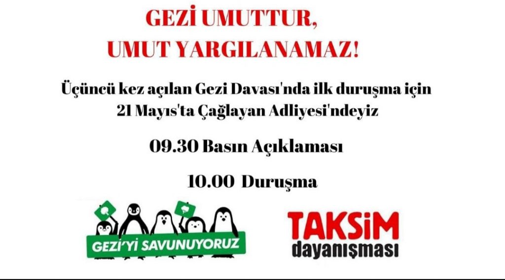 Birleştirme kararı verilen Gezi davası 21 Mayıs’ta saat 10.00’da 30. Ağır Ceza Mahkemesinde görülecek.