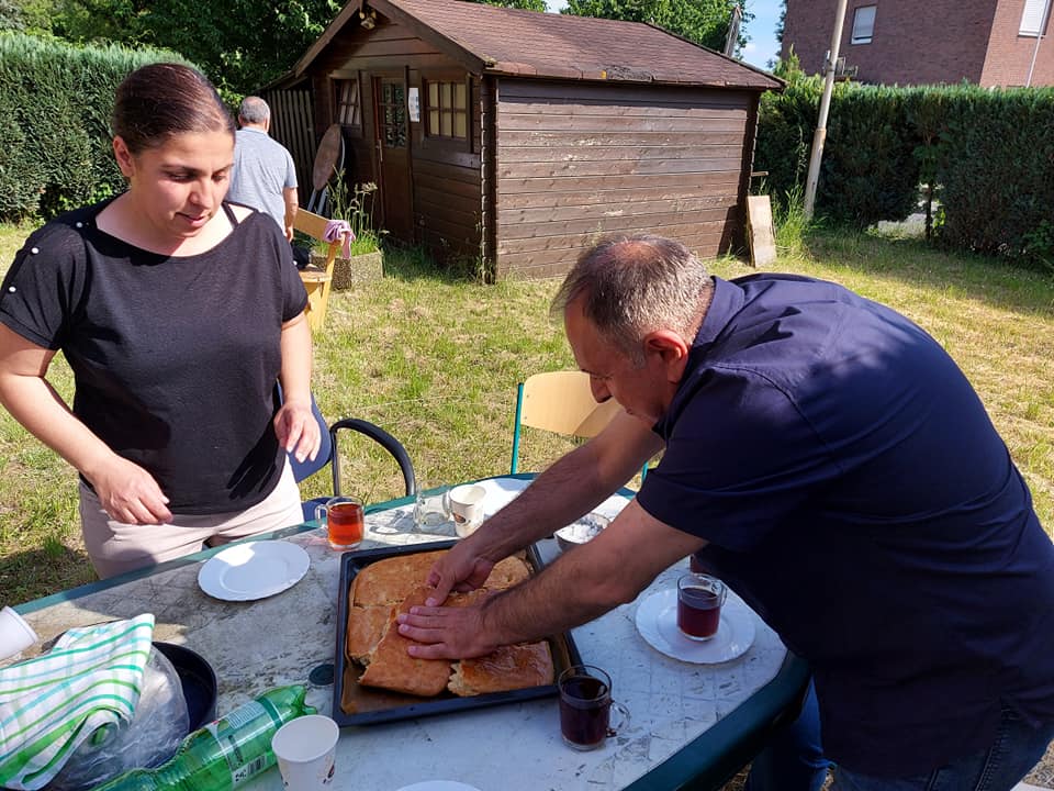 Koronavirüs salgınından dolayu uzun bir zamandır kapalı olan Cemevleri salgının büyük oranda denetim altına alınmasıyla birlikte, koronavirüs tedbirlerine uyum sağlayarak kapılarını yeniden üyelerine açmaya başladı. Bu kapsamda, Grevenbroich Cemevi’nin bir grup üyesi bugün ( 11 Haziran Cuma ) saat 16:00’dan sonra cemevinin bahaçesinde bir araya geldi.