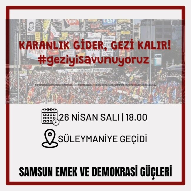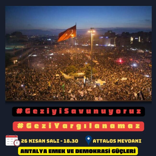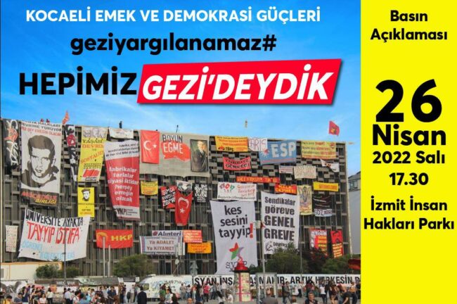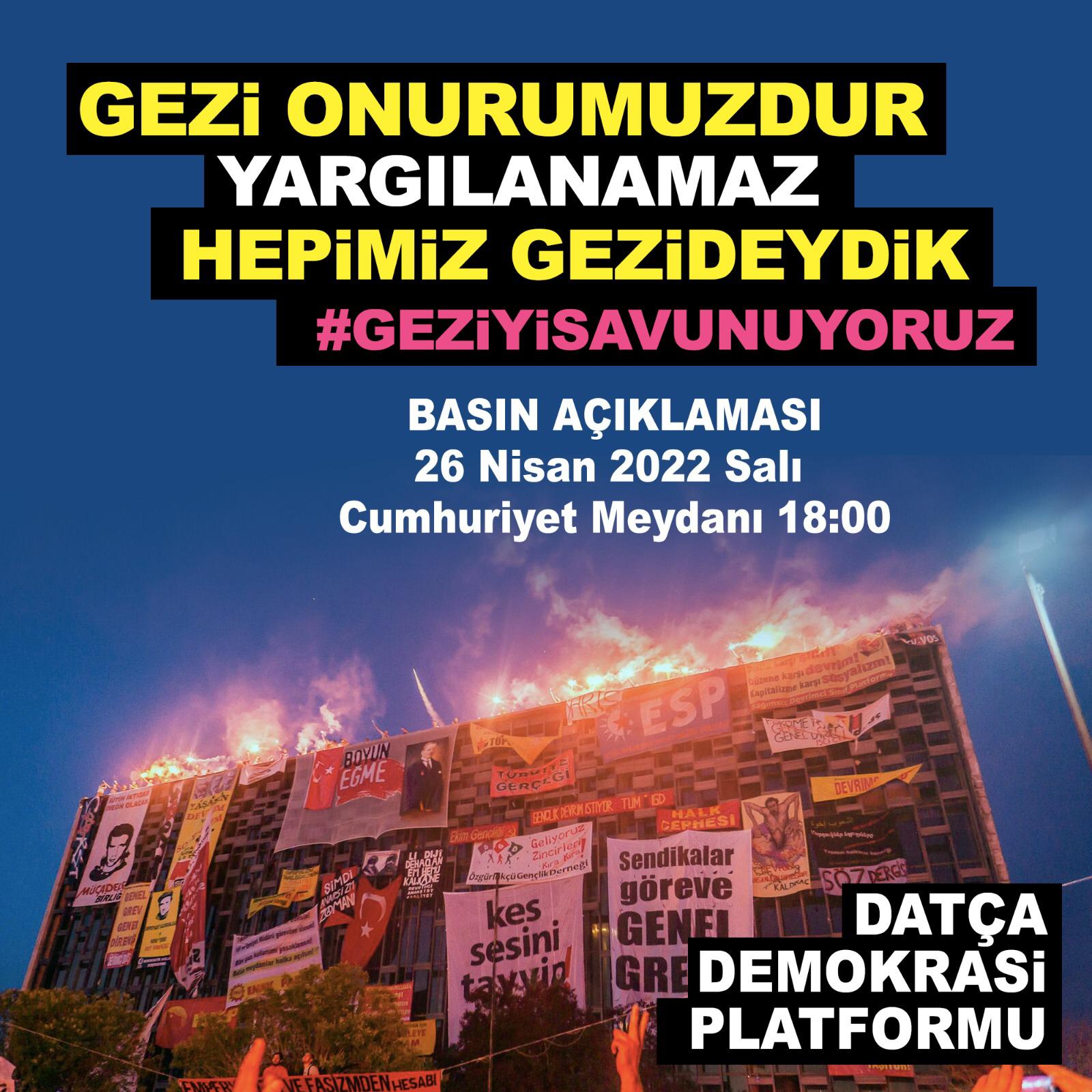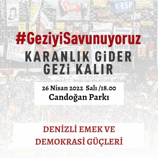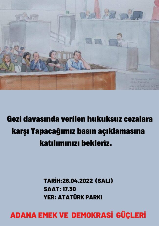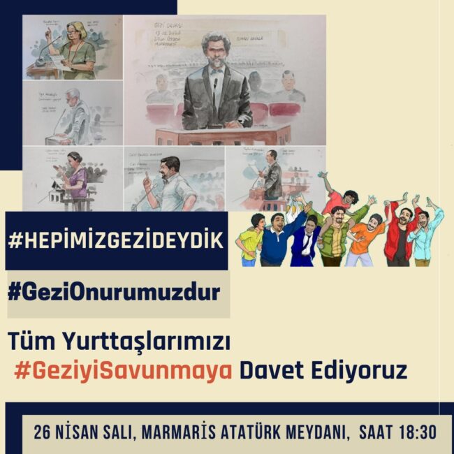 Gezi Davası’nda karar duruşmasında Osman Kavala ağırlaştırılmış müebbet hapis cezası, Mücella Yapıcı, Çiğdem Mater, Hakan Altınay, Mine Özerden, Can Atalay, Tayfun Kahraman, Yiğit Ali Ekmekçi’ye 18’er yıl hapis cezası vermesi büyük bir tepkiyle karşılandı. Bu hukuksuz karar, “Gezi’yi savunuyoruz” diyenler tarafından bugün Türkiye’nin dört bir yanında protesto edecek.