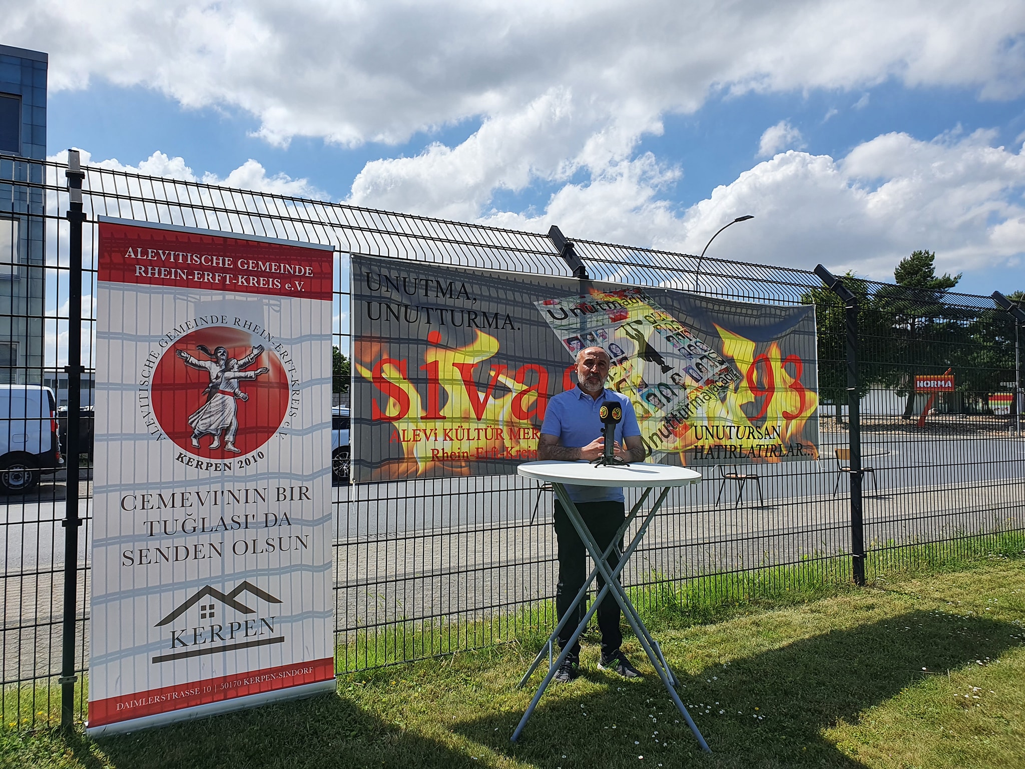 AABF Genel Başkanı Hüseyin Mat’ın, AABF NRW Bölge Başkanı Selahattin Göktürk’ün, AABF NRW Bölge Sekreteri Mesut Kabakçı’nın, Düren ve Köln Cemevleri’nde gelen yöneticilerin ve üylerin katıldıklar yaz şenliğinde selamlam konuşması yapan Cemevi Başkanı Sami Doğan, Sivas’ta katledilen canlarımızı anmak için AABF NRW Bölge Temsilciliği’nin 2 Temmuz’da Köln’de yapacağı anmaya ilişkın bilgi verip kitlesel katılım çağrısı yaptı.