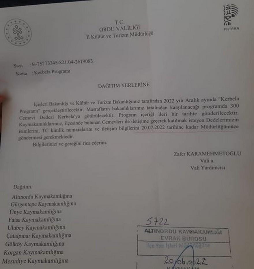 İçişleri Bakanlığı ile Kültür ve Turizm Bakanlığı adına organize edilen fakat arkasında Diyanet İşleri Bakanlığı‘nın bulunduğu bir tertip ile 300 Genç Alevi dedesi Aleviliği İslama entegre edilme çalışmalarında kullanılmak üzere Kerbela’ya götürülmek isteniyor.