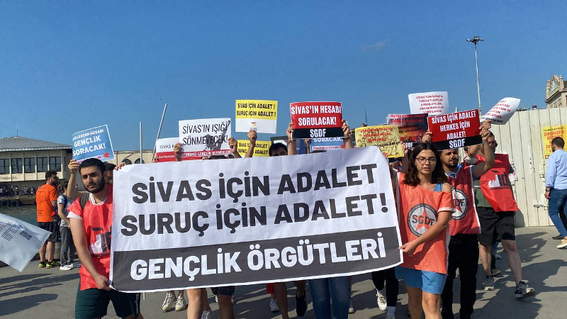 Sivas’ta katledilen 33 can Kadıköy’de anıldı. Alevi Kurumlarının düzenlediği eylemde  devrimci gençlik örgütleri de katıldı. Gençlık örgütleri adına yapılan açıklmada, “Sivas için adalet Suruç için adalet”i sağlayacakları sözünü verirken açıklamada, Sivas şehitlerinin unutturulmayacağını rehber oldukları gibi mücadelenin süreceği kaydedildi.