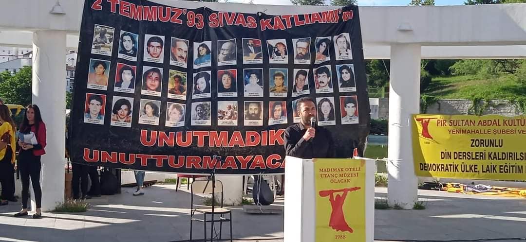 Anma etkinliğine konuşma yapan PSAKD Yenimahalle Şube Başkanı Onur Şahin, 2 Temmuz 1993’de  Sivas’ta katliamı yapan sanıkların devlet eliyle korunduklarını belirterek, katliama ilişkin şu ifadeleri kullandı: