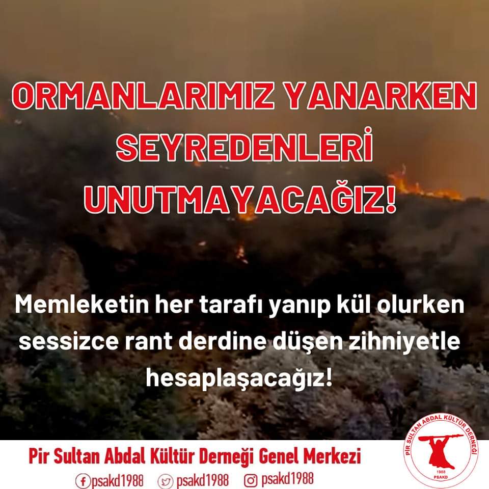 Pir Sultan Abdal Kültür Derneği ( PSAKD) Daça ve Çeşme’de çıkan orman yangınlarıyla ilgil yazlı bir açıklama yaptı.