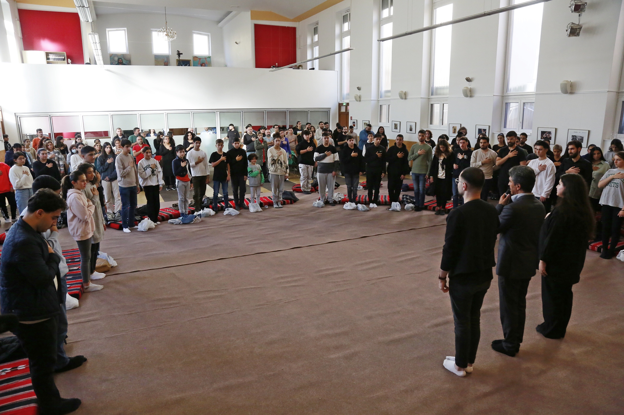 BAT-Cemevi Gençlik Kurulu (BDAJ) tarafından Türkçe ve Almanca ‘Gençlik Cemi’ erkânı düzenlendi. Cemevi Ana salonunda dün akşam saatlerinde gerçekleştirilen Cem erkânına çocuk ve genç yaştaki canlar, Cemevi Yönetim, İnanç ve Kadın Kurulları temsilcilerinin yanı sıra çok sayıda kişi katıldı. Ercan Yıldız Dede, Gençlik üyesi Ana Nagihan Mara Akan’ın yönettiği ve zakirlik hizmetini Anıl Sarpkaya ileSeyit Doğan’ın yaptığı Cem erkânı katılımcı canlardan alınan rızalık sonrası okunan gülbenk ve delil