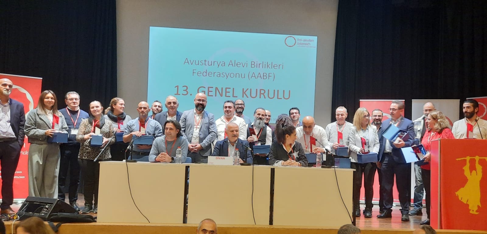 Avusturya Alevi Birlikleri Federasyonu (AABF) 13. Olağan seçimli genel kurulunu, 2022 yılının baharın sıcak sevindirici haberi ile, Aleviligin resmi olarak kendine özgü ve özgür olarak tanılma süreci ile birlikte, gecikmeli de olsa bile, başarı dolu bir genel kurul oldu. 15 10 2022 Tarihin de gerçekleşen, 13. Olağan seçimli genel kurul da hiç bir kurum yada kuruluşu davet etmiyerek, bu genel kurulun kendi iç örgütlenmesi içerisinde kendi kurumları ile gerçekleştirmek istedikleri Plan ve proğramlarını, Avusturya da Tanılmanın ilk evresi sonrası, önümüzdeki döneme dair ikinci evrenin nasıl bir proğram yolu izlenecegi konusunun tüm zamanlamasını geniş tutulacağı için kimseler çağrılmadı.