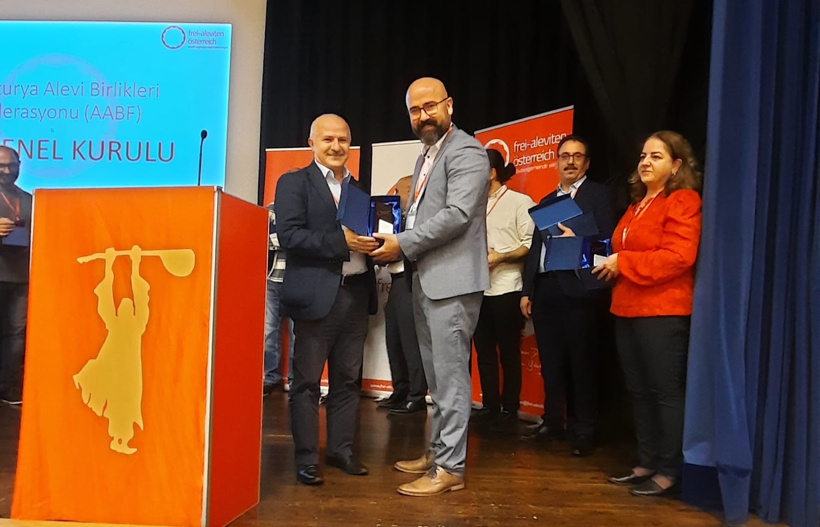 Özgür Turak, yerine oturmadan önce, Avusturya Alevi Birlikleri federasyonu ile birlikte, Üye bileşen AKM lerin genel başkanları yanı sıra, Gençlik, Kadınlar,İnanç kurumu başkanlarını, Tanılma süreci içerisinde yardımlarını esirgemeyen yaklaşık 30 kurum kuruluş temsilcilerini tek tek sahneye alarak onur Plakatları ile, onurlandırıldılar.