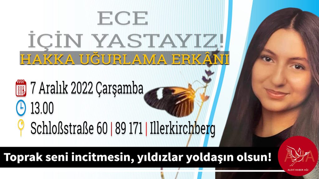 Ece Sarıgül’ün ailesi bugün, AABF’ye bağlı olan Ulm Alevi Kültür Merkezi- Cemevi‘nde taziyeleri kabul etti. Yüzlerce kişi ailenin acısını paylaşıp başsağlığı vermek için Ulm Cemevi’nde biraraya geldi