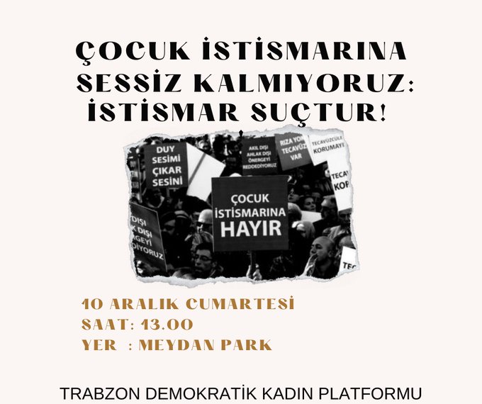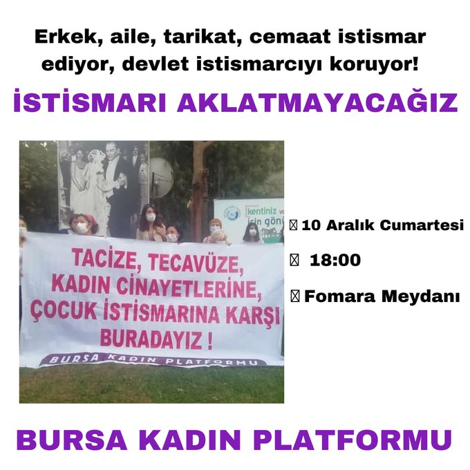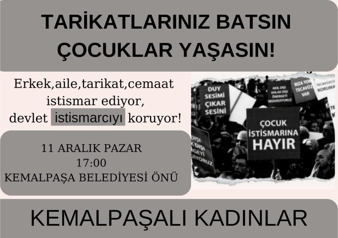 Erkek, aile, tarikat, cemaat istismar ediyor; devlet istismarcıyı koruyor! İstismarcıların affedildiği bu ülkede hiçbir çocuk güvende değil!”