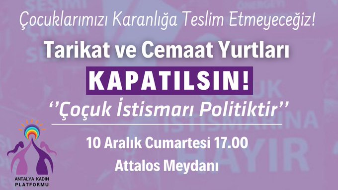 ”Hiranur Vakfındaki istismarın sorumlusu Ensar Vakfı’nı aklayanlardır.Tarikatları, cemaatleri koruyan, çocukları koruyucu yasaları uygulamayan AKP iktidarı tüm kurumları ile suç ortağıdır. Dinci gerici, istismarcı suç ittifakı karşısında feminist laiklik bayrağını yükselteceğiz