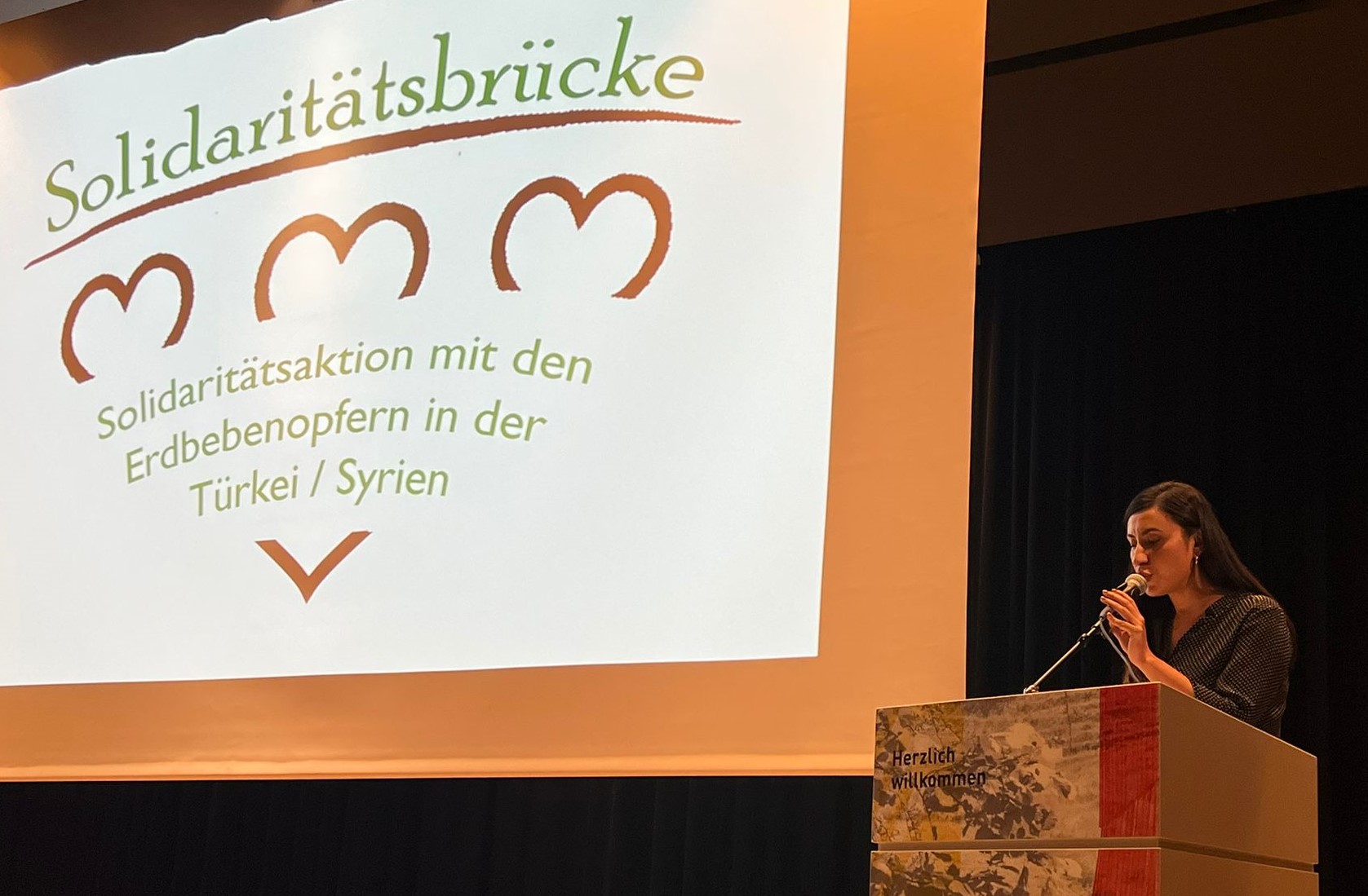 Asil Keskin konuşmasında yapılacak dayanışmanın doğrudan depremzedelere ulaştırılmasının çok önemli olduğunu vurgulayarak bunun için sahada çalışma yürüten sivil toplum örgütlerinin, kriz koordinasyonlarının muhatap alınması gerektiğine dikkat çekti. Solidaritätsbrücke olarak sahada çalışma yürüten organizasyonlarla iletişimde olunduğu belirtildi.