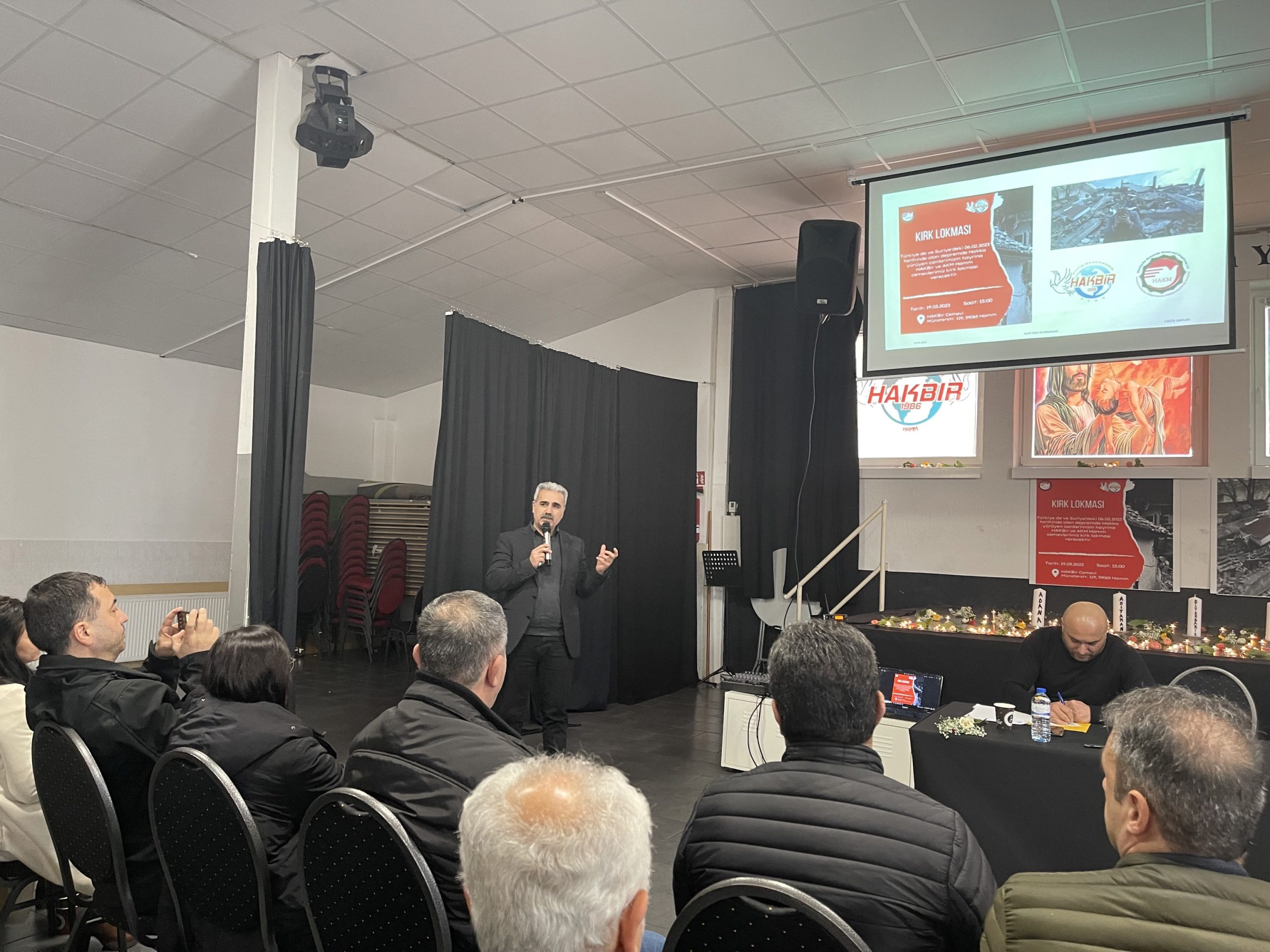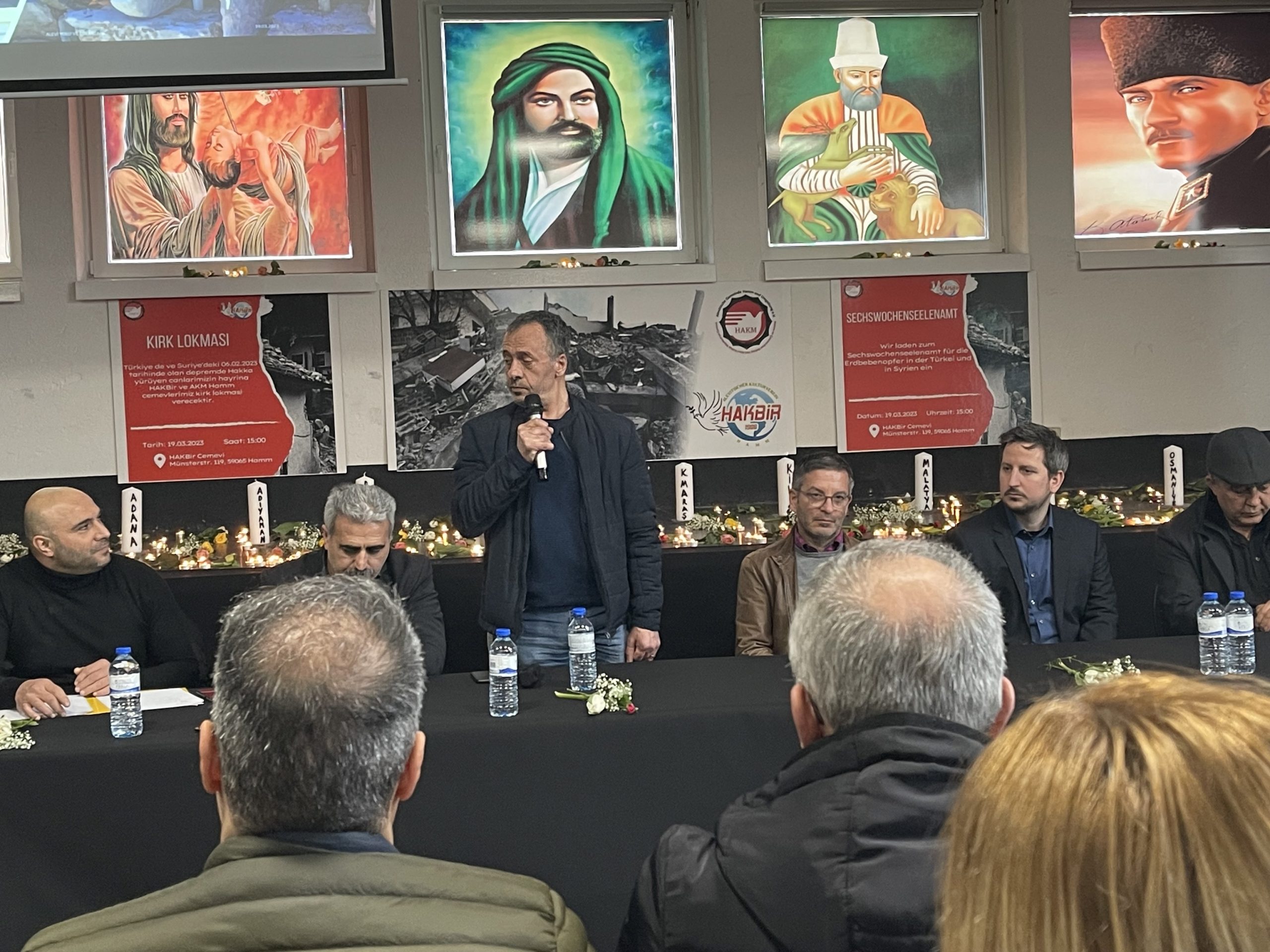 Almanya‘ nın Kuzey Ren Vesfalya Eyaletinde bulunan Hamm şehrindeki Hakbir Cemevinde Türkiye‘ de depremde hayatını kaybedenler anıldı. Şehirde bulunan her iki Cemevinin organizasyonunda Türkiyenin 11 ilinde depremde yaşamını yitirenler için 40. Gün anma toplantısı bir dakikalık saygı duruşu ile başladı. 200 ün üzerinde vatandaşımızın katıldığı anma toplantısında Hamm Büyükşehir Belediye Başkanı Marc Herter, bölge Milletvekili Justus Moor, Hamm Uyum Meclisi Başkanı İsmail Erkul, Hamm Belediyesinde görevli Sebahattin Şentürk, Hamm Hacı Bektaşi Veli Alevi Kültür Merkezi Başkanı Mehmet Akbaba, ev sahibi Cemevinin Başkanı Besim Eker de hazır bulundular.