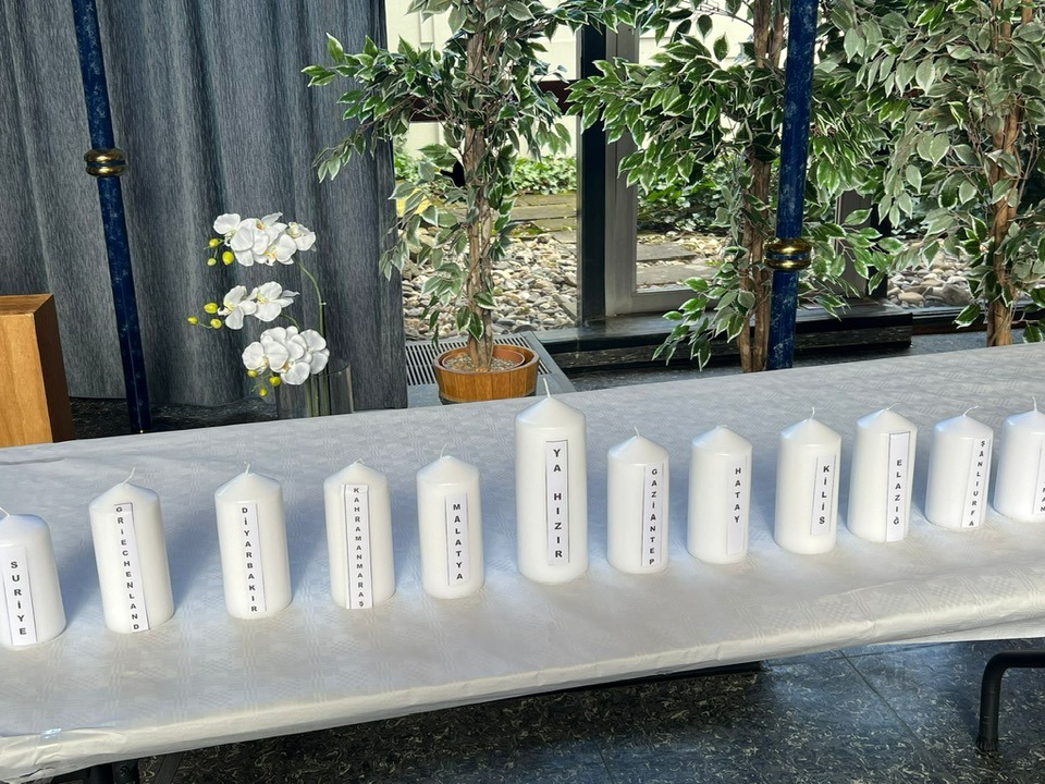 Maraş merkezili depremde hayatını kaybeden canlar için yapılan saygı duruşundan sonra Belediye başkanı ve kurumlardan gelen temsilciler kısa konuşmalar yaptılar. Konuşmacıların ardından Metin Erdoğan Dede söz aldı. Alevilikte Hakk’a yürüme ve sırlanma erkanı üzerine kısa bir konuşma yapan Metin Dedenin söylediği deyişlerden sonra, delili uyandırması için AABF NRW İnanç Kurulu yöneticisi Nejla Ana’ya söz verildi. Delil uyandırıldıktan sonra toplu olarak 5. Alevi Mezarlığı’nın bulunduğu alana geçildi.