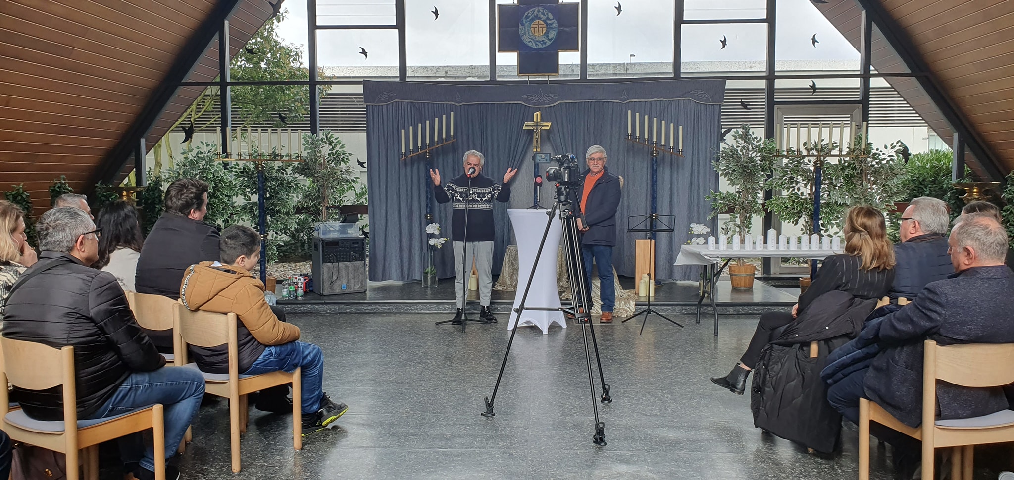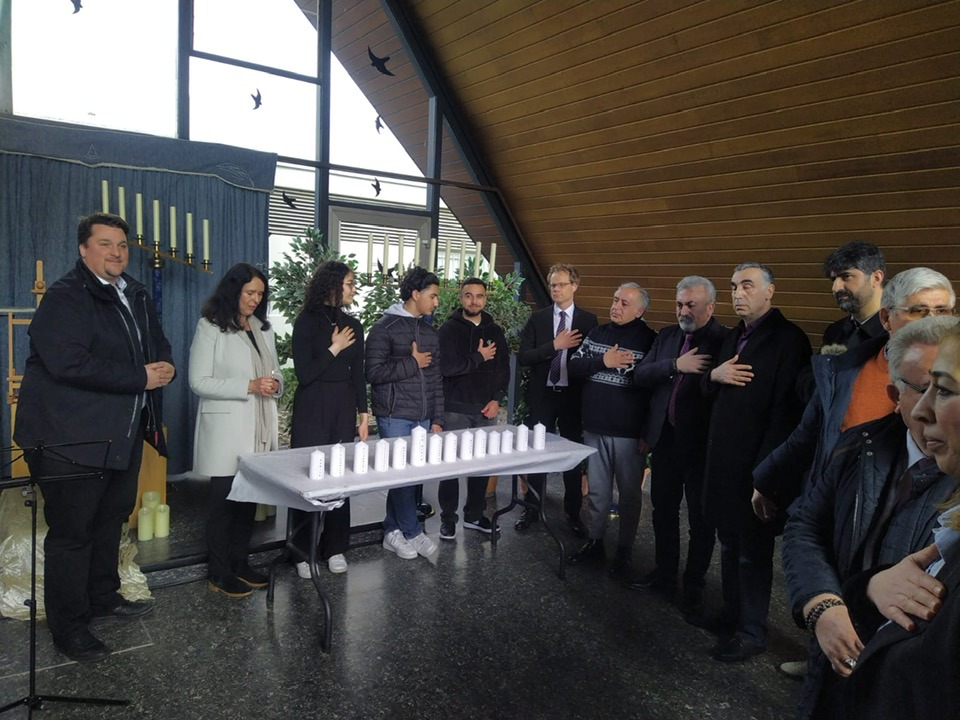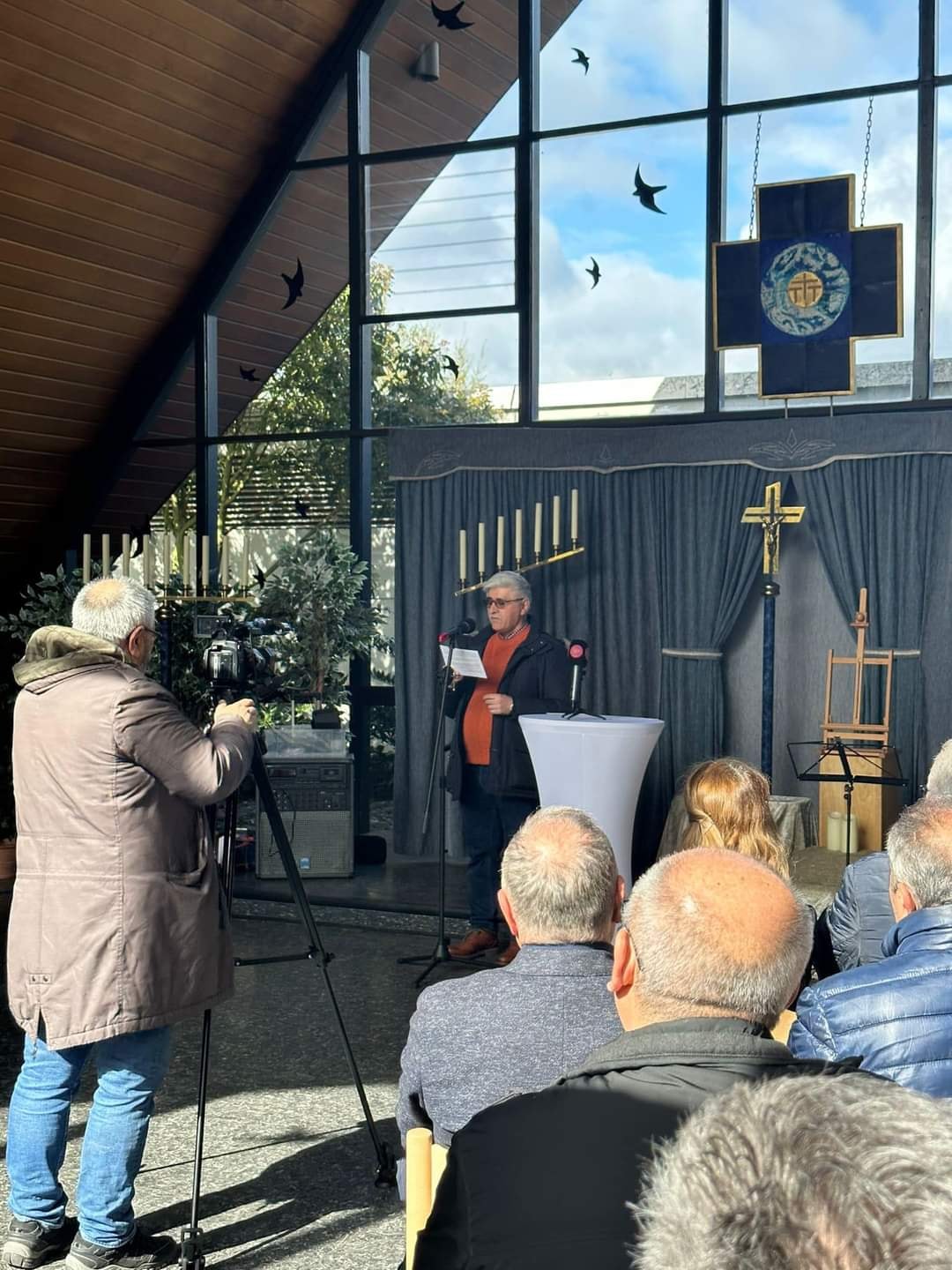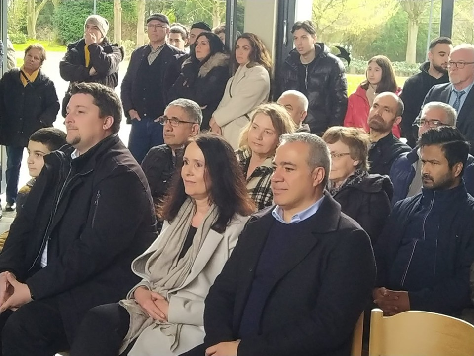 Troisdorf Cemevi’nden gençlerin, kadınların, yöneticilerin ve üyelerin yoğun bir katılım sağladıkları mezarlık açılışının birinci bölümü havanın rüzgârlı olmasından dolayı Kilise salonunda gerçekleştirildi.