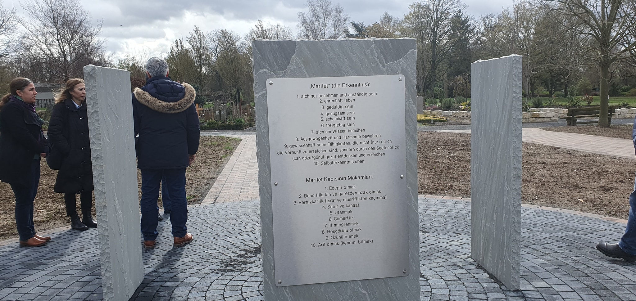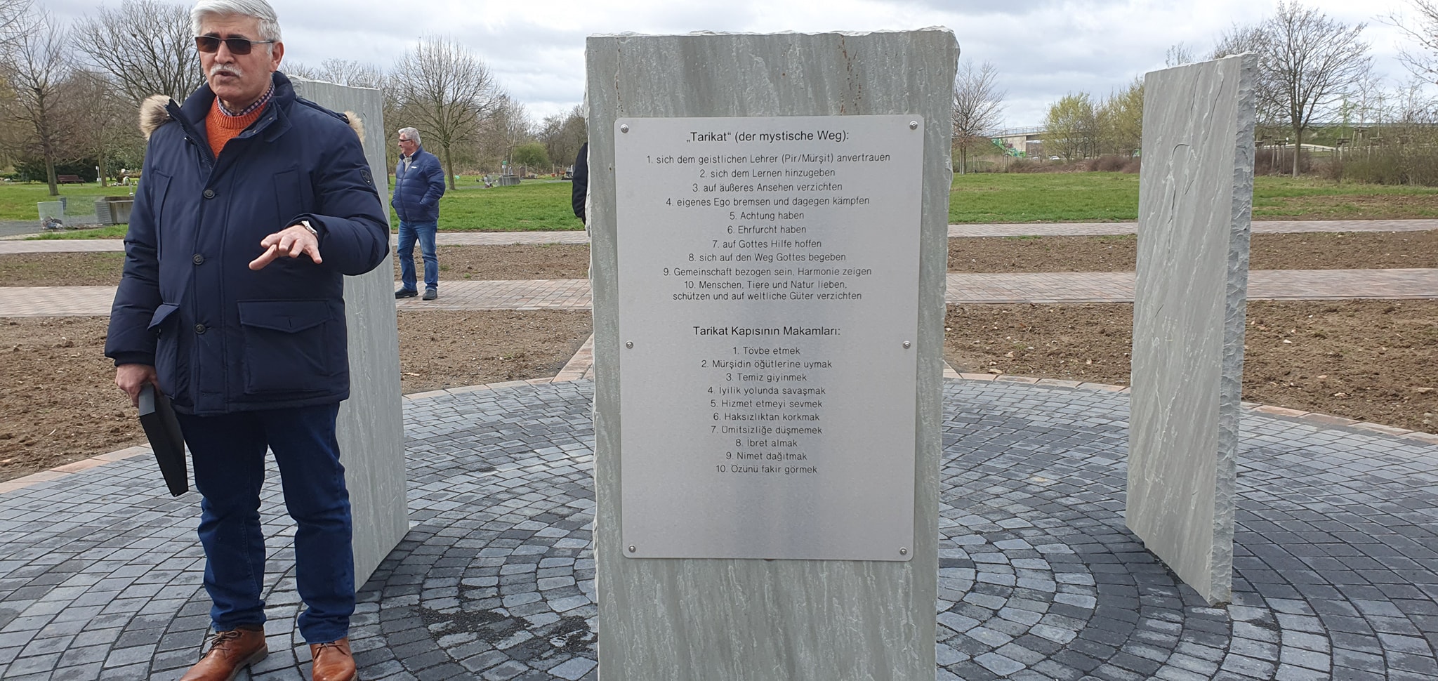 5. Alevi Mezarlığı’nın açılışının ikinci bölümüne mezarlık alanında devam edildi. Metin Erdoğan Dede burada 4 Kapı 40 Makam üzerine bilgilendirme konuşması yaptı. Metin Erdoğan Dede’den sonra, Troisdorf Alevi Kültür Merkezi – Cemevi Başkanı Hasan Kaya kısa bir teşekkür konuşması yaptı. Başkan Kaya, konuşmasına 5. Alevi Mezarlığı’nın açılmasına önemli katkılar sunan Troisdorf Belediye Başkanı Alexander Biber’e teşekkür ederek başladı. 5. Alevi Mezarlığı’nın açılışana katılan Alman siyasi partilerinin ve kitle örgütlerinin temsilcilerinede teşekkür eden Kaya konuşmasının devamında, Alevi kurumlarından gelen temsilcilerede teşekkkü etti.