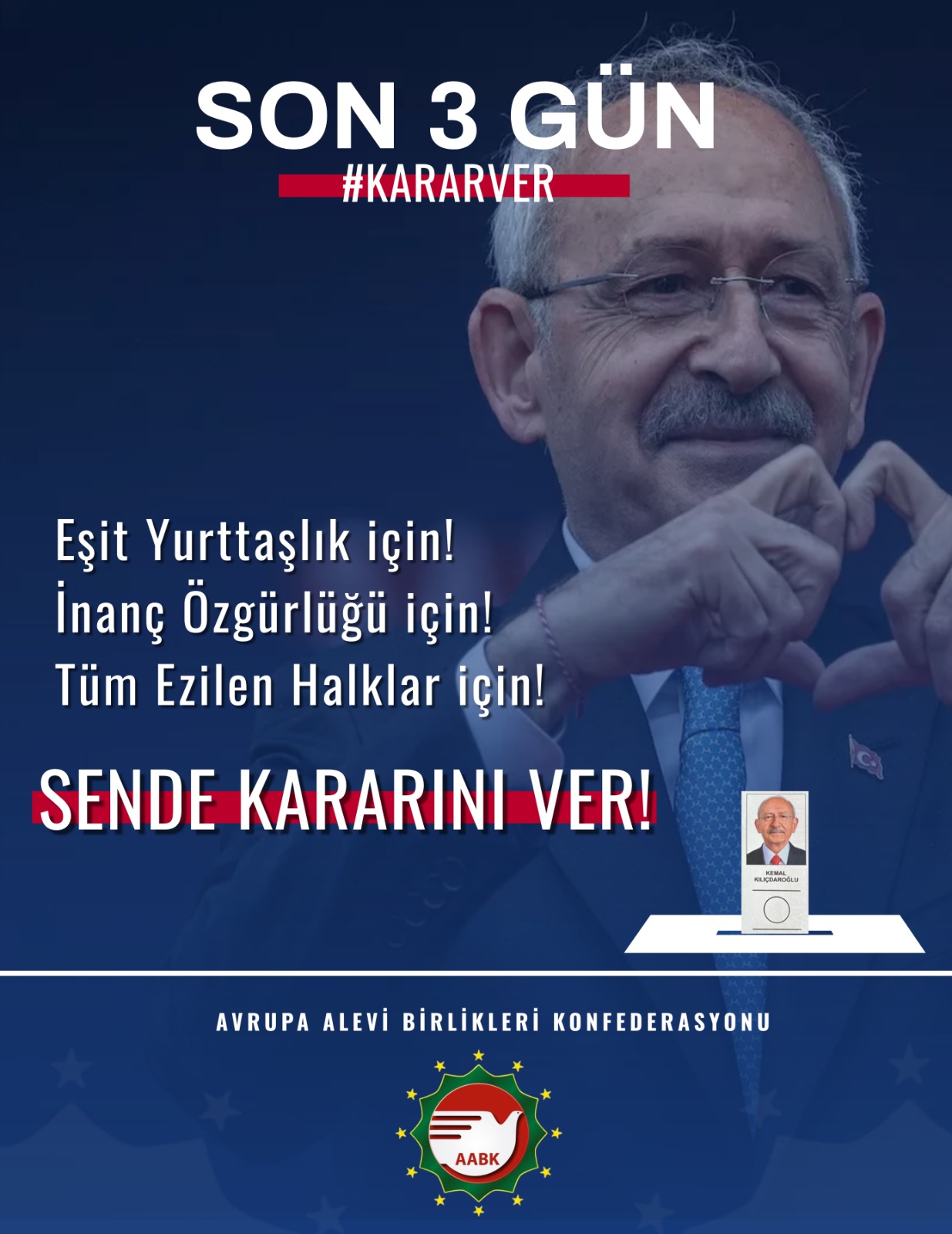 Avrupa Alevi Birlikleri Konfederasyonu sosyal medya üzerinden yaptığı bir afiş payalaşımıyla oyunu kullanmayan seçmenlere şu çağrıyı yaptı: ”