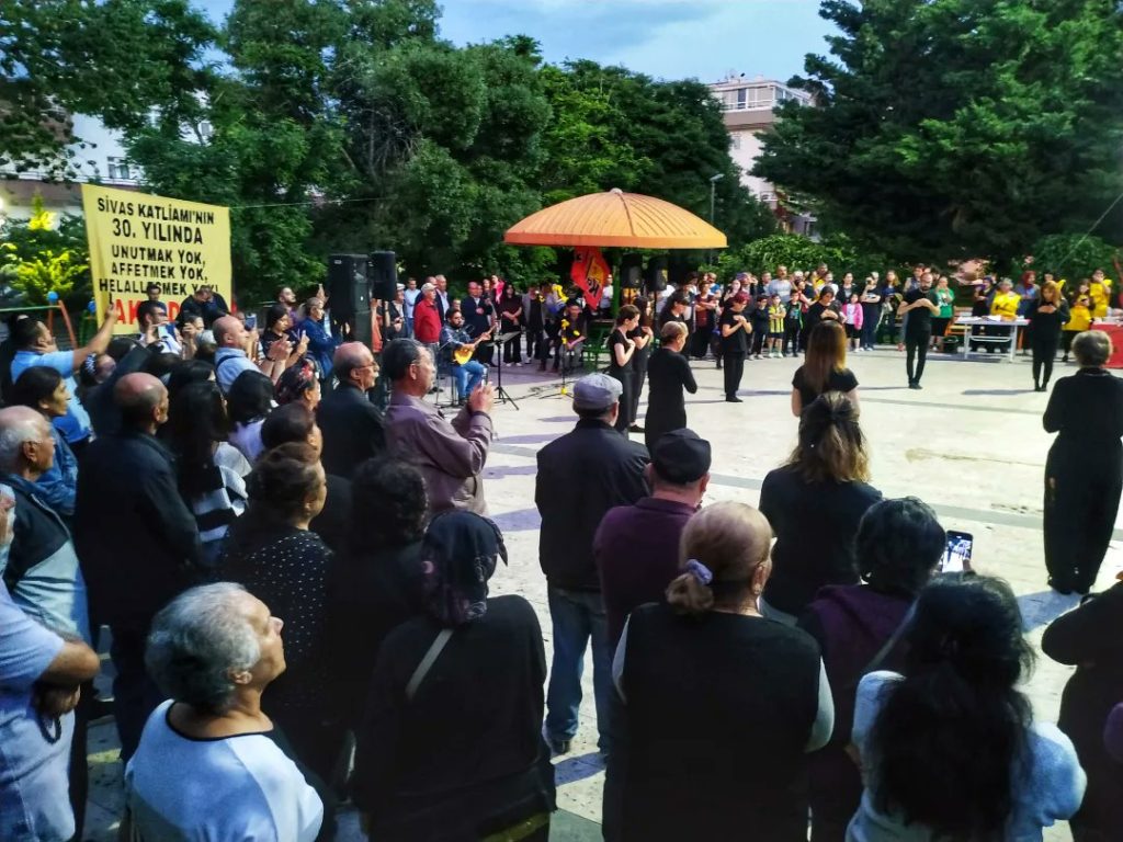 Katliamda yaşamını yitirenler anısına saygı duruşuyla başlayan anmada PSAKD Mamak Şube Başkanı Fadime Türkyıldız konuştu. Türkyılız, katliamın üzerinden 30 yıl geçmesine rağmen adaletin sağlanmadığını, zaman aşımı kararının AKP’li Cumhurbaşkanı Tayyip Erdoğan tarafından “milletimize hayırlı olsun” diyerek karşılandığını hatırlatarak şunları söyledi: “Firari 3 sanık yönünden, devam eden mahkeme süreci de zaman aşımına uğratılmaya çalışılmaktadır. İnsanlığa karşı işlenen suçlarda zaman aşımı olamaz. Madımak katliamı, toplumun ayrışması, kutuplaştırılması için bilinçli bir Alevi katliamıdır. Dün Madımak Oteli’ni kuşatanlar, devlet kadrolarında işe alınmış hatta milletvekili yapılmıştır. Devlet, Maraş, Sivas, Çorum, Dersim, Malatya katliamlarında olduğu gibi Madımak katliamı ile de yüzleşmediği için sonrasında Gazi, Ümraniye, 10 Ekim, Roboski, Suruç gibi katliamları yaşadık. Katliamlar, ancak amasız fakatsız yüzleşilerek aydınlatılabilir.”