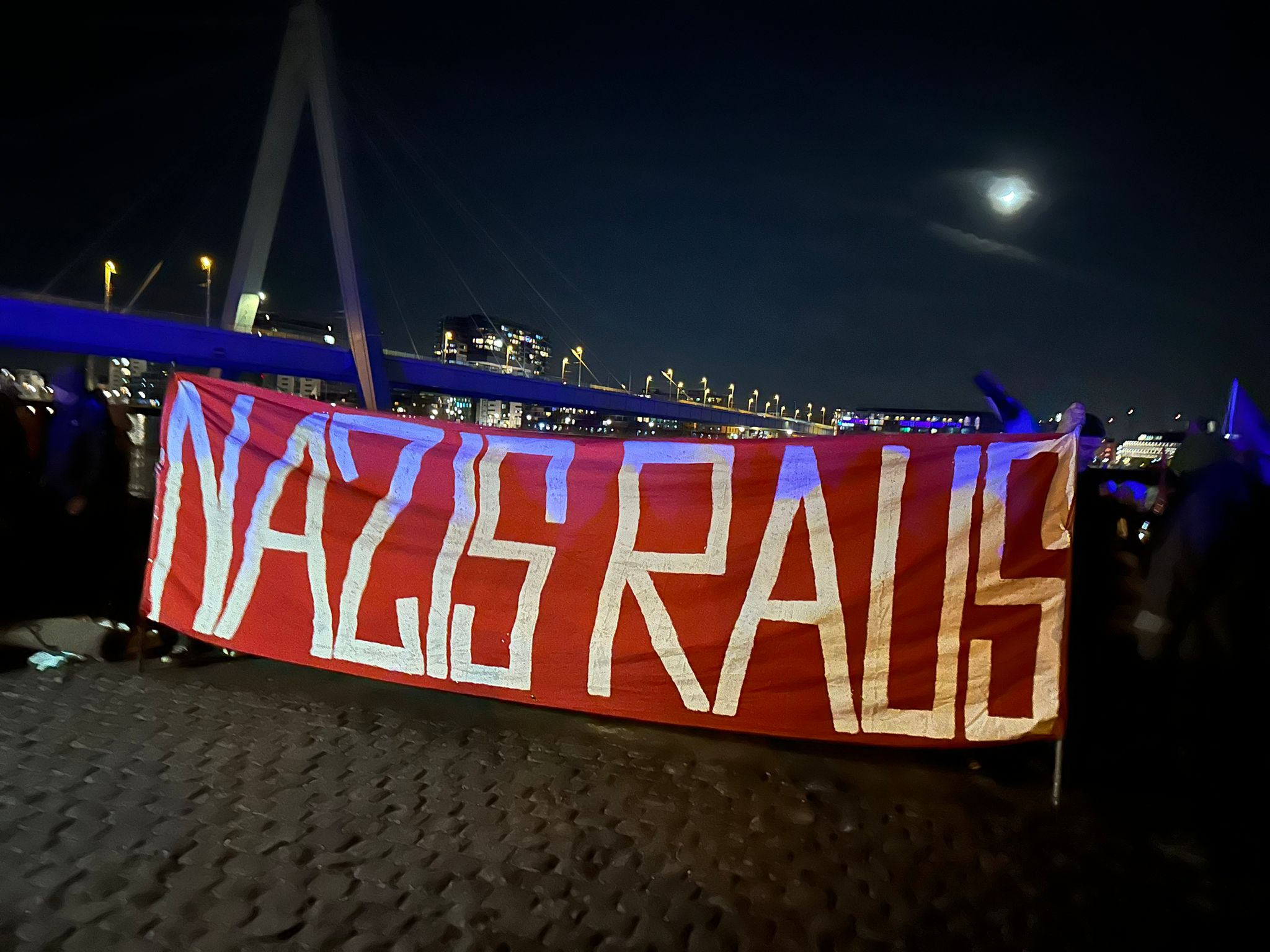 AFD, CDU ve Almanya’daki ırkçılara karşı Köln Heumartta Faşizme Geçit yok şiarıyla bir miting düzenlendi. Mitingin 1. Saat sınırlamasına karşı 30 binin üzerinde her ulustan anti- faşistler tek bir slogan attılar ”Alle Zusammen Gegen den Faşizmus.” Köln Heumart çıkan bütün yollar kilitlendi, tramvaylar 1.7.9.4.3 çalışmadılar. Agif, YS,, Samidon, AufBau kortejinden Hanau, Rojava ve Filistin sloganlarıyla kortejlere katılımlar yoğundu. Polisin yasaklarına karşı kitleler Heumarktan Neumarkta yürüyüşe geçtiler AGİf ve YS , Aufbau kortejinde taşınan Filistin bayrağı sövenistlerin hefefindeydi. Tüm engellemelere rağmen Filistin bayrağı dalgalandı. Neumarktan Deuz/ Werfe doğru yürüyen kitle her dilden faşizme karşı omuz omuza yürüdü. Burada bir kez daha görüldükü FAŞİZME KARŞI BİRLEŞİK bir mücadele önemli bir yerde duruyor. Deuz Werfede devam eden Faşizme Geçit yok yürüyüşü saat 19’00 dan 11.00 kadar devam etti. Mitinge katılanlar hafta sonu Köln’de buluşmak için söz verdiler daha karabalık gelecegiz.