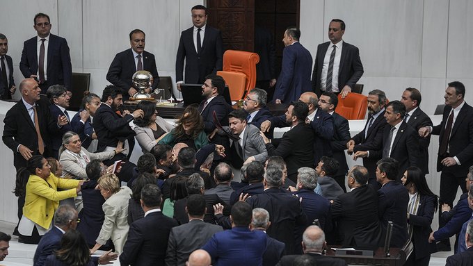 DEM Parti Eş Genel Başkanları, “Kadın milletvekillerimize AKP’li erkek milletvekilleri tarafından saldırı yapılması siyasi haydutluktur. Bu saldırılar halk iradesini, hukuku tanımamaktır ve siyasi acizliktir.”