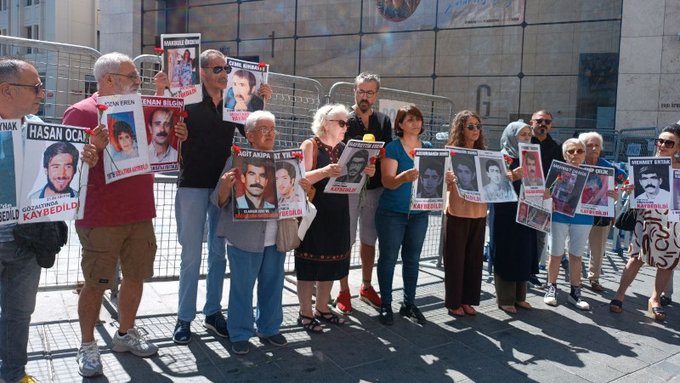 1012. hafta eyleminde Galatasaray Meydanında yan yana gelen Cumartesi Anneleri, 17 Ağustos 1995’te gözaltında kaybedilen Abdurrahim Demir’in akıbetini sordu, faillerin cezalandırılmasını istedi.