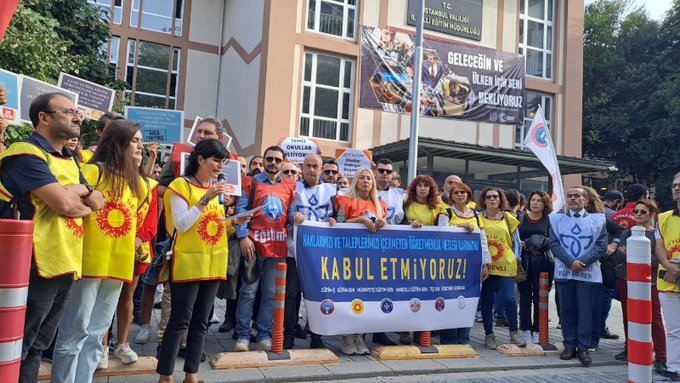 “Bu gerekçelerle bizler eğitim alanında örgütlü sendikalar olarak, yeniden TBMM gündemine getirilecek olan kanun teklifine itiraz ediyoruz. Unvanlarda ayrıştırmayı kabul etmiyoruz! Kıdem yılına göre tüm öğretmenlere ödemeler yapılmalı, bu ödemeler emekliliğe yansıtılmalıdır. Milli Eğitim Akademesi’ni kabul etmiyoruz! Öğretmenlik diploması esastır, başka bir yapıya ihtiyaç yoktur. ÇEDES gibi protokollerle öğretmenlik mesleği dışında bizlere dayatılan görevleri kabul etmiyoruz! Öğretmenler kanunda belirtilen asli görevlerini yapmalı, kanunlarda açıkça yazdığı gibi okullarda öğretmenler dışında hiç kimse eğitim öğretim hizmeti vermemelidir. Disiplin hükümleriyle baskılanmak istemiyoruz! Haklarımızı kısıtlayan ve bizleri keyfi ceza uygulamalarıyla baş başa bırakacak olan her türlü düzenlemeye karşıyız. Özel sektör öğretmenlerinin ücretleri güvence altına alınmalıdır! Taban maaş yasasıyla, kamu-özel farkı ortadan kaldırılmalıdır. Güvencesiz istihdamı reddediyoruz! Ücretli, sözleşmeli değil, kadrolu ve güvenceli istihdam sağlanmalıdır. Meslek Kanununda haklarımız ve taleplerimiz olmalıdır! Bu teklif, sadece görev ve sorumluluklardan bahsederken, öğretmenin haklarını ve taleplerini görmezden geliyor.”