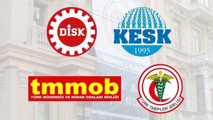 DİSK, KESK, TMMOB ve TTB, İstanbul Barosu’na açılan davaya tepki göstererek, “Bu hukuksuzluktan derhal vazgeçilmeli, demokratik seçimlerle ele geçiremedikleri İstanbul Barosu yönetimini bu ve benzeri tepeden inme operasyonlarla etkisiz kılma ve itibarsızlaştırma girişimlerine son verilmelidir” ifadelerini kullandı.