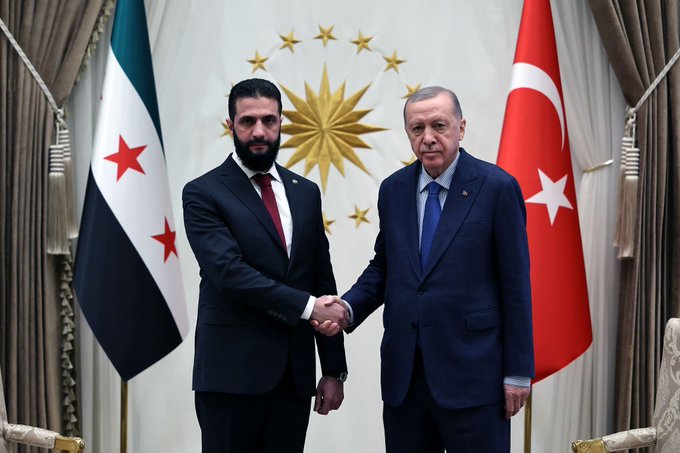 AKP’li Cumhurbaşkanı Recep Tayyip Erdoğan; Suriye’de Alevi, Kürt, Keldani, Ezidi ve Hristiyan topluluklar başta olmak üzere binlerce insanın katili IŞİD artığı HTŞ çetesi lideri Colani’yi “devlet başkanı” protokolü ile karşıladı.