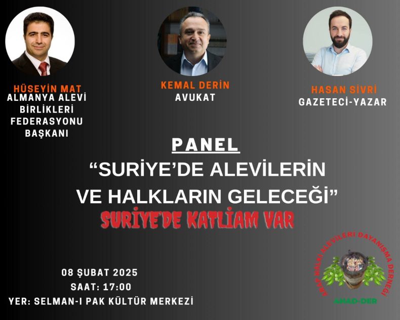 Moderatörlüğünü Seda Yüce’nin yapacağı ”Suriye’de Alevilerin ve halkların geleceği” konulu kinci panel ise 9 Şubat 2025 Pazar günü saat:15:00’te Samandağ Belediyesi Toplantı salonunda yapılacak.
