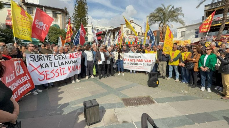 Antalya Alevi Bileşenleri Emek ve Demokrasi Güçleri Attalos Meydanında açıklama yaptı. “Suriye’deki Alevi katliamına sessiz kalma” pankartının açıldığı eylemde, şu çağrı yapıldı: “Bu katliamın faillerini saklamayın, isimlerini açıkça dile getirin. Saldırıları gerçekleştiren çeteleri aklamayın, meşrulaştırmayın. Bu kanlı planları yürüten hükümetler, istihbarat servisleri ve medya organları hesap vermelidir. Uluslararası kamuoyunu, insan hakları örgütlerini, vicdan sahibi herkesi Suriye’deki Alevi soykırımına karşı harekete geçmeye çağırıyoruz. Susarsak, bu vahşetin suç ortağı oluruz.”