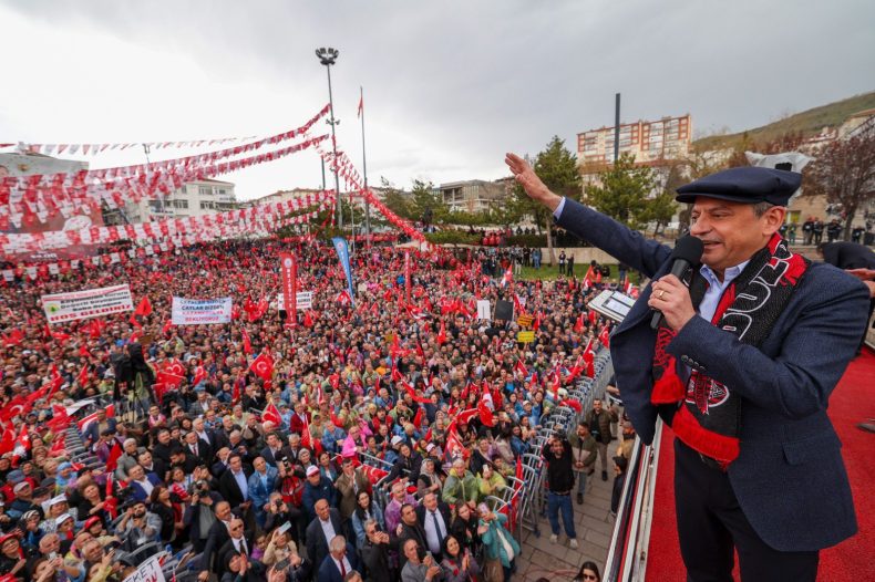 “Ve son sözüm biraz önce nasıl sermayeye, iş dünyasına, iş insanlarına dediysem. Sizi korkutuyorlar ki ‘CHP gelirse kötü olur.’ Aksine iyi olur. Siz kazanacaksınız. Adil bir vergi ile eşitçe bölüşeceğiz. Aynı şekilde Yozgat’taki, Yozgat üzerinden tüm Türkiye’deki geçmişte CHP’ye hiç oy vermeyen, muhafazakar seçmenlere, muhafazakar seçmenlerin ailelerine buradan Cumhuriyet Halk Partisi’nin Genel Başkanı olarak açıkça ifade ediyorum ki, sizi kaygılara sevk ederek, yaşam biçiminize müdahale ederler diye yalan atarak, iftira atarak, aslında açlıktan, yoksulluktan, düşük emekli maaşından, düşük asgari ücretten şikayetçi çocuğunun aldığı eğitimden şikayetçi milyonları zorla yanlarında tutmaya çalışıyorlar. Namusumuz ve şerefimiz üzerine ant içeriz ki Cumhuriyet Halk Partisi iktidarı demokrasiyi getirecek, özgürlükleri getirecek, kimsenin ne yaşam biçimine müdahale edecek ne de kimsenin geleceğinden endişeleneceği hiçbir kısıtlama olmayacak. Zaten bu iktidar bu yalanla, bu iftirayla, sizi yoksulluğa, işsizliğe mahkum etmeye ve katlanıp yine de bunlara oy vermenize uğraşıyor. Ama CHP iktidarında Avrupa Birliği’ne girilince, Avrupa Birliği’ndeki ülkelerin hangisinde açlık sınırının altında asgari ücretli var? Sen de olmayacaksın. Hangisinde açlık sınırının yarısına en düşük emekli maaşı var? Sen de olmayacaksın. Avrupa Birliği’ndeki zenginlikler de, özgürlükler de bizimle birlikte olacak. Kimsenin ne inancına ne yaşam biçimine kimse ilişmeyecek. Üniversitede arkadaşları başörtülü diye sınıfa sokulmadığında onlarla birlikte eylem yapan Özgür Özel var partinin başında. Kimsenin endişesi olmasın. Kimsenin. Türk’ü ile Kürt’ü ile Laz’ı ile Çerkes’i ile bu ülkenin tüm renkleri Türkiye’nin gücüdür. Atatürk bu renkleri, bu güzel mozaiği, çok güçlü bir harçla birbirine tutturmuştur. Biz birbirini seven, birbirine güvenen, birbirine inanan insanlar olarak Türkiye Cumhuriyeti’ni yüzyıl sonra bir kez daha ayağa kaldıracağız. Size söz veriyorum biz haklıyız, biz başaracağız, hep birlikte biz kazanacağız.”