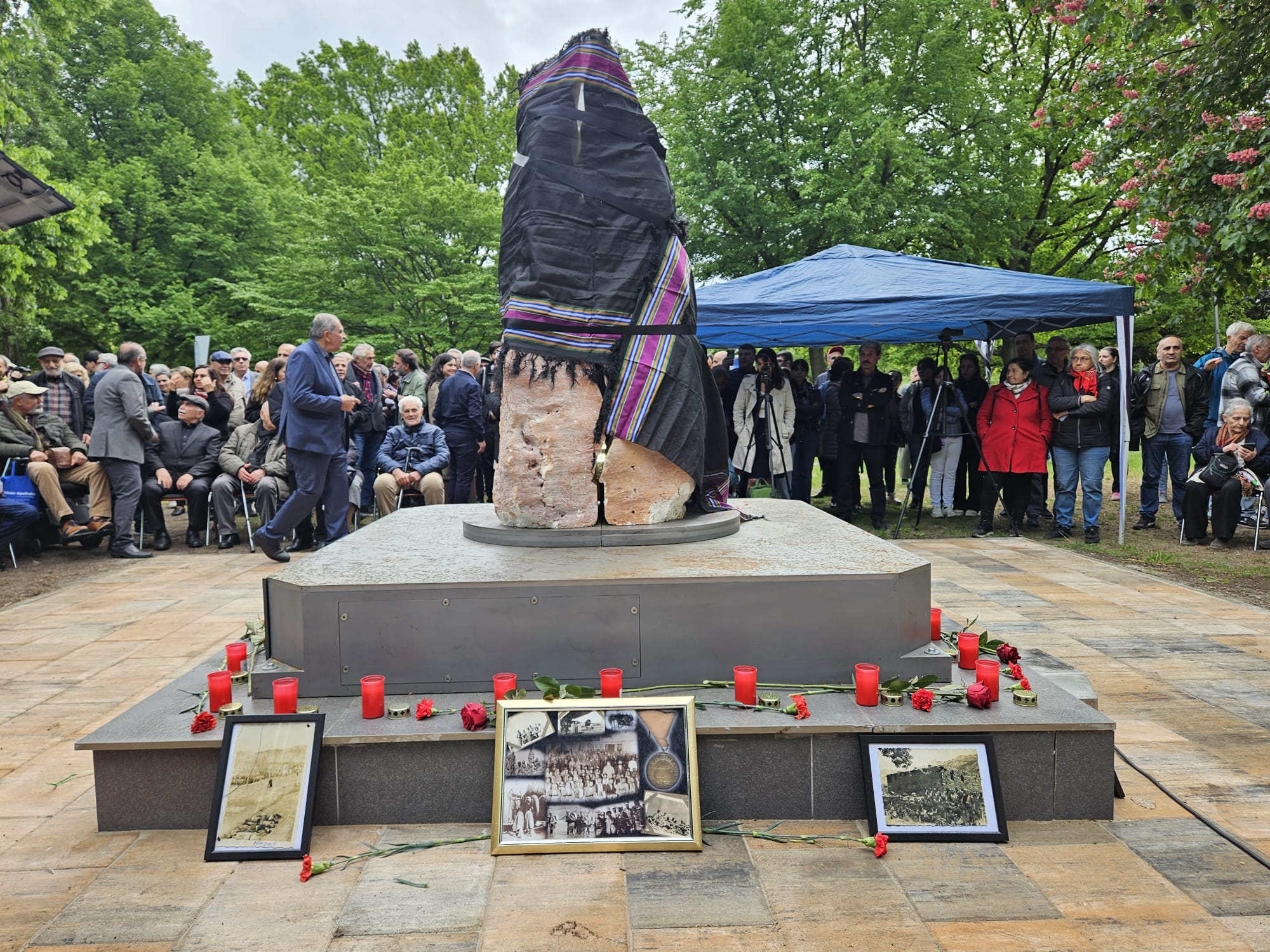 Anıtın açılış törenine katılan Federal Tarım Bakanı Cem Özdemir (Yeşiller), Evanjelik Kilise Papazı Peter Stork, Sol Parti Federal Parlamento Milletvekili Gökay Akbulut, soykırım araştırmacısı Prof. Dr. Taner Akçam, Alman tarihçi Prof. Dr. Tessa Hoffmann, SPD eyalet milletvekilleri Sevim Aydın ve Hakan Demir ile Friedrichshain-Kreuzberg Belediye Başkanı Clara Herrmann’nın (Yeşiller) yaptıkları kısa konuşmalar alanda bulunan kitle tarafından ilgiyle dinlenip alkışlandı.