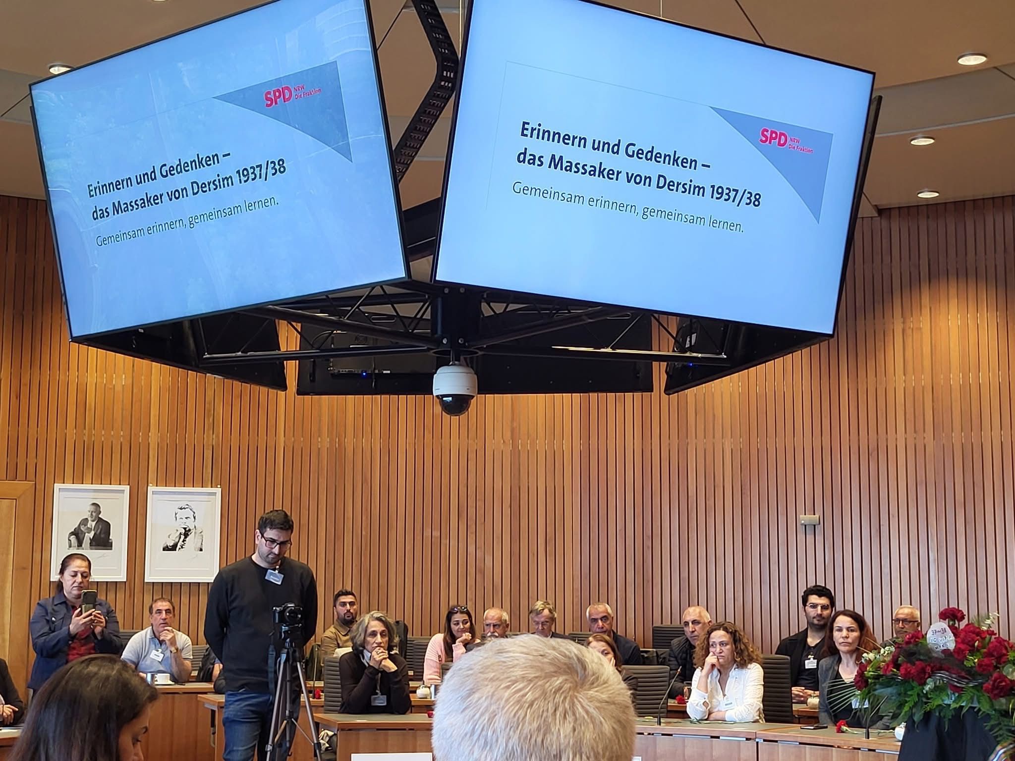 Haber Merkezi – 5 Mayıs 2025 Pazartesi günü, Almanya’nın Kuzey Ren Vestfalya (NRW) Eyalet Parlamentosu’nda düzenlenen anlamlı bir etkinlikte 1937-38 Dersim Tertelesi’nde yaşamını yitiren on binlerce insan anıldı. Etkinlikte yalnızca geçmişin acıları hatırlatımadı, bu insanlık suçunun gelecek kuşaklara nasıl aktarılacağı ve Almanya’da nasıl tanıtılacağı da tartışıldı.