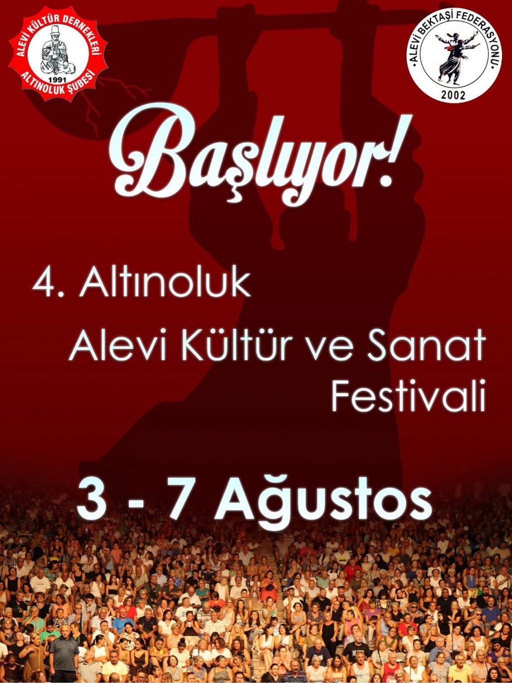 Alevi inancının, kültürünün ve sanatının buluştuğu 4. Altınoluk Alevi Kültür ve Sanat Festivali 3-7 Ağustos tarihleri arasında sizlerle. Söze, nefese, birlik ve beraberliğe çağırıyoruz. Altınoluk’ta buluşalım.