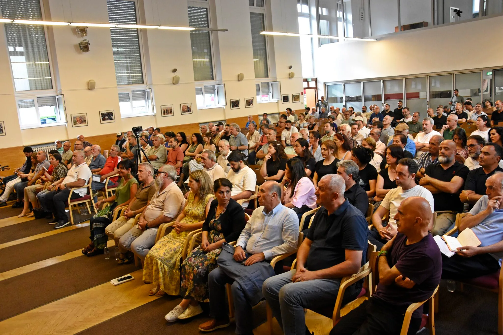 22 Haziran Pazar Akşamı Berlin Cemevi’nde “Türkiye’deki güncel siyasal gelişmeler-Çözüm/Barış süreci’ başlıklı panele Dem Parti Eş Genel Başkanı Tuncer Bakırhan, Dem Parti MK ve bazı vekilleri, BAT-Cemevi Yönetim, İnanç, Kadın ve Gençlik Kurulları, kardeş dernek, demokratik kitle örgütleri, siyasi parti temsilcilerinin yanı sıra çok sayıda kişi katıldı.