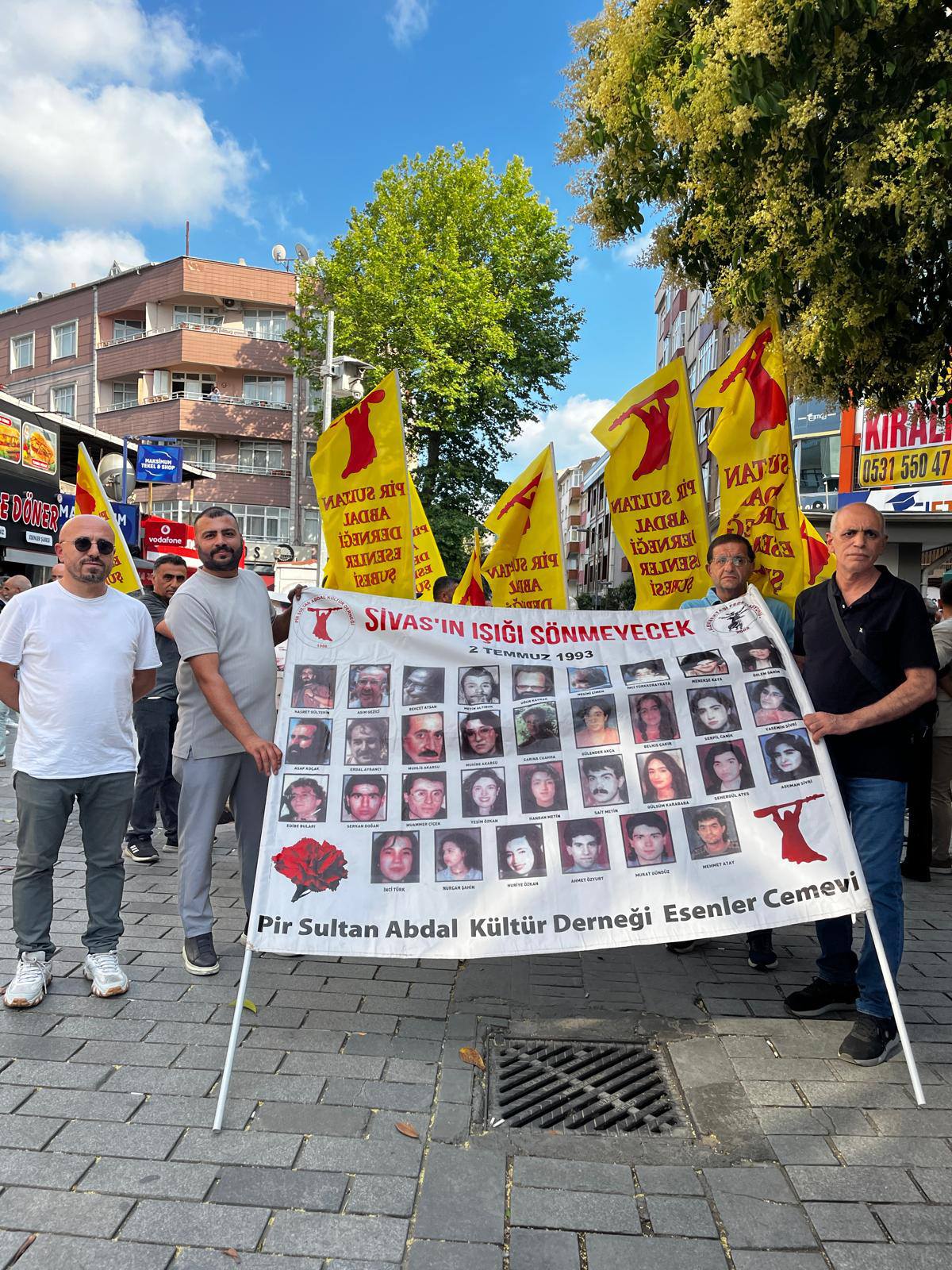 PSAKD Esenler Cemevi, 2 Temmuz 1993’te Sivas Madımak Oteli’nde yakılarak katledilen 33 aydını ve sanatçıyı anmak için Dört Yol Meydanı’nda bir araya geldi. Anmada adalet ve yüzleşme çağrısı yinelendi.