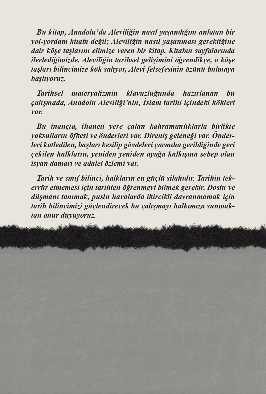 Eser, Anadolu Aleviliği’nin İslam tarihi içindeki köklerini inceliyor. Tarihsel materyalizmin rehberliğinde hazırlanan kitap, Aleviliğin yalnızca inançsal boyutlarını değil, aynı zamanda halkların isyan damarını ve adalet özlemini de ele alıyor.