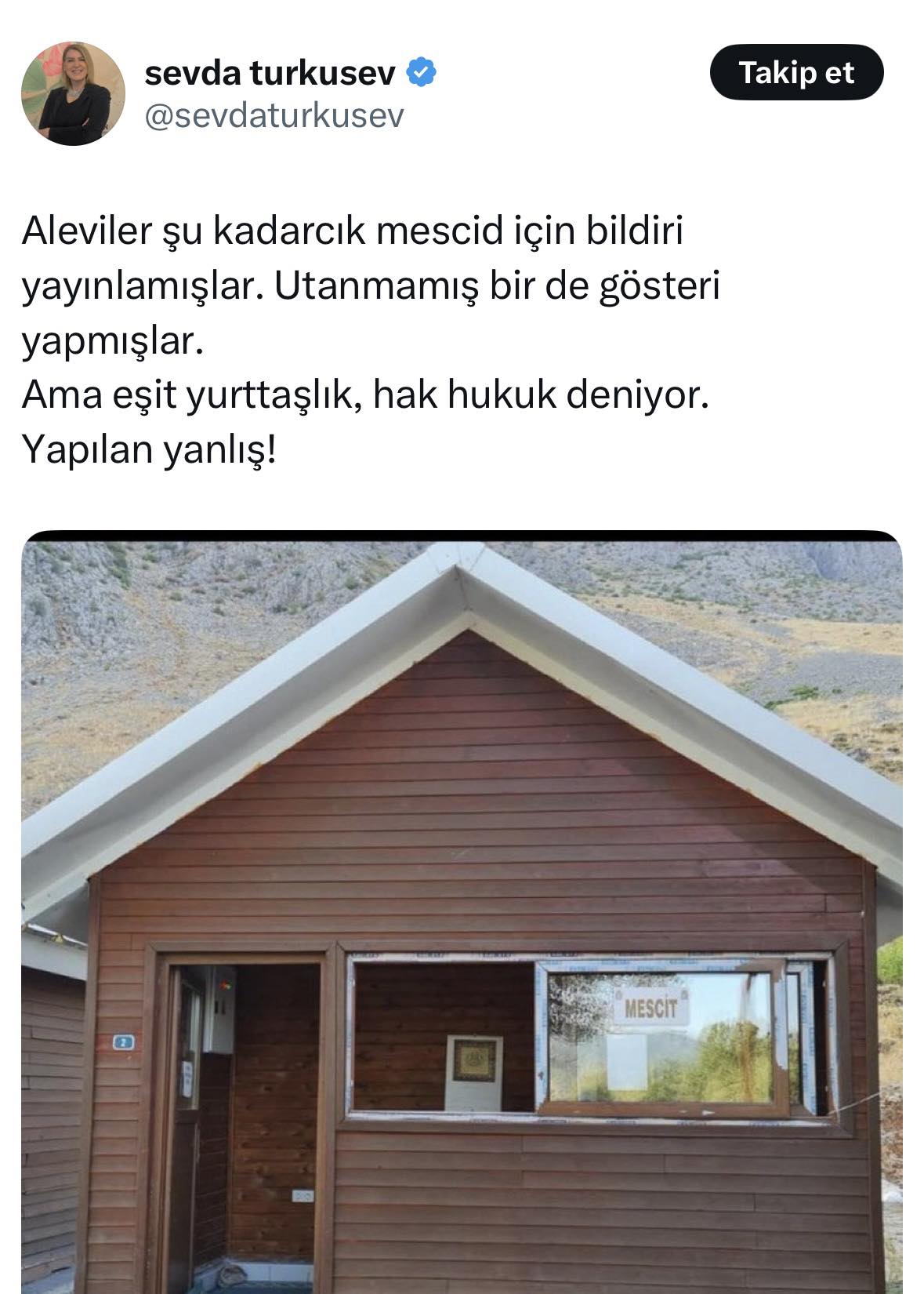 ⌈Haber Merkezi⌉ Munzur Gözeleri’nde mescit yapılmasına tepki gösteren Alevilere yönelik yazar Sevda Türküsev’in sosyal medyada paylaştığı “Aleviler şu kadarcık mescit için bildiri yayınlamışlar. Utanmamış bir de gösteri yapmışlar. Ama eşit yurttaşlık, hak hukuk deniyor. Yapılan yanlış!” sözleri Alevi toplumunda tepkilere neden oldu. Aleviler, Munzur Baba ve Munzur Gözeleri gibi inançsal açıdan kutsal mekânların asimilasyon politikalarıyla dönüştürülmesine karşı çıkarken, Türküsev’in bu açıklaması Alevilere yönelik hakaret olarak değerlendirildi. Bu sözlere en sert tepki ise DEM Parti Mersin Milletvekili Perihan Koca’dan geldi. Koca, Alevilerin inanç özgürlüğü ve eşit yurttaşlık taleplerinin meşru olduğunu vurgulayarak, Türküsev’in sözlerini “hadsizlik” ve “asimilasyon girişimlerini aklama çabası” olarak nitelendirdi.