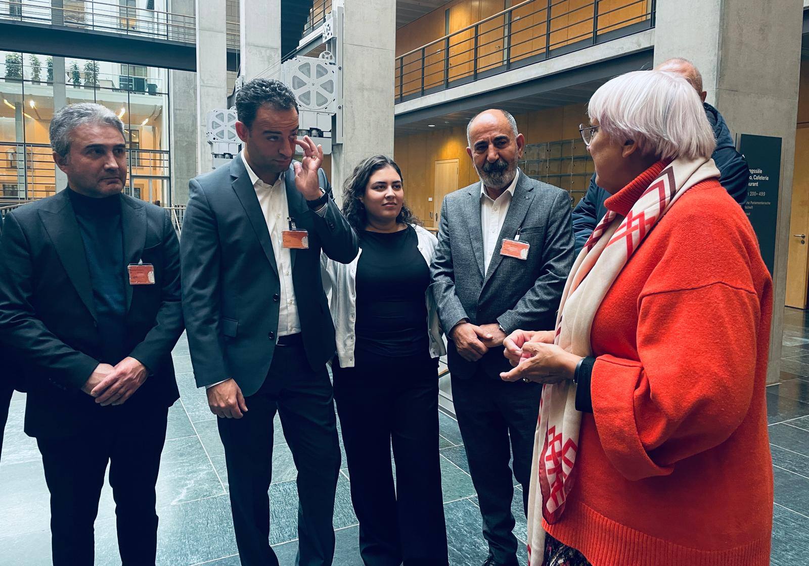 Heyet, Federal Meclis milletvekilleri Serdar Yüksel, Macit Karaahmetoğlu, Mirze Ediz, Cansu Özdemir ve Ayşe Asar ile Federal Meclis binasında bir araya geldi. Görüşmeye ayrıca CHP Ankara Milletvekili Umut Akdoğan ile sürgünde yaşayan eski HDP milletvekilleri Sibel Yiğitalp ve Faysal Sarıyıldız da katıldı.