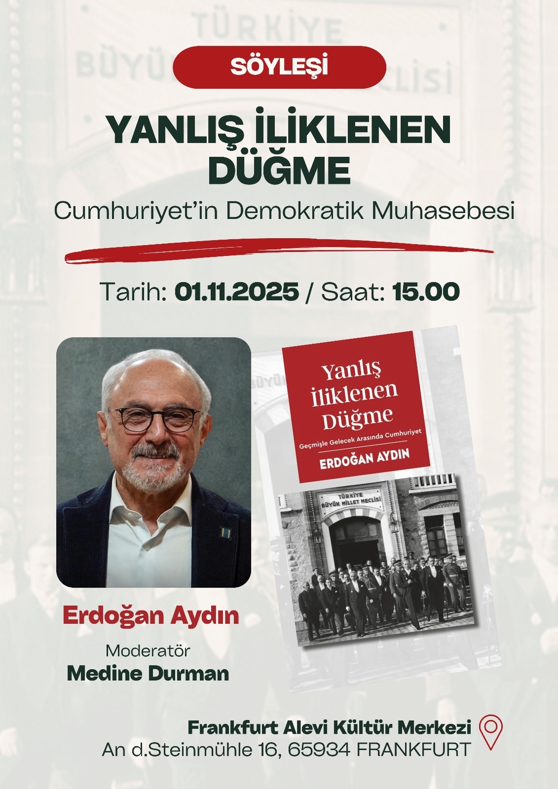 Söyleşi dizisi 1 Kasım 2025 Cumartesi günü Frankfurt Alevi Kültür Merkezinde devam edecek. Etkinlikte moderatörlüğü Medine Durman üstlenecek.