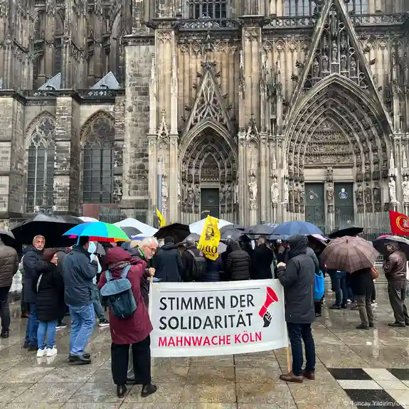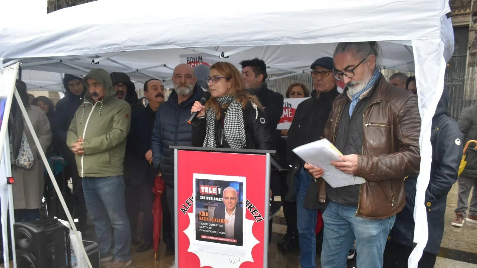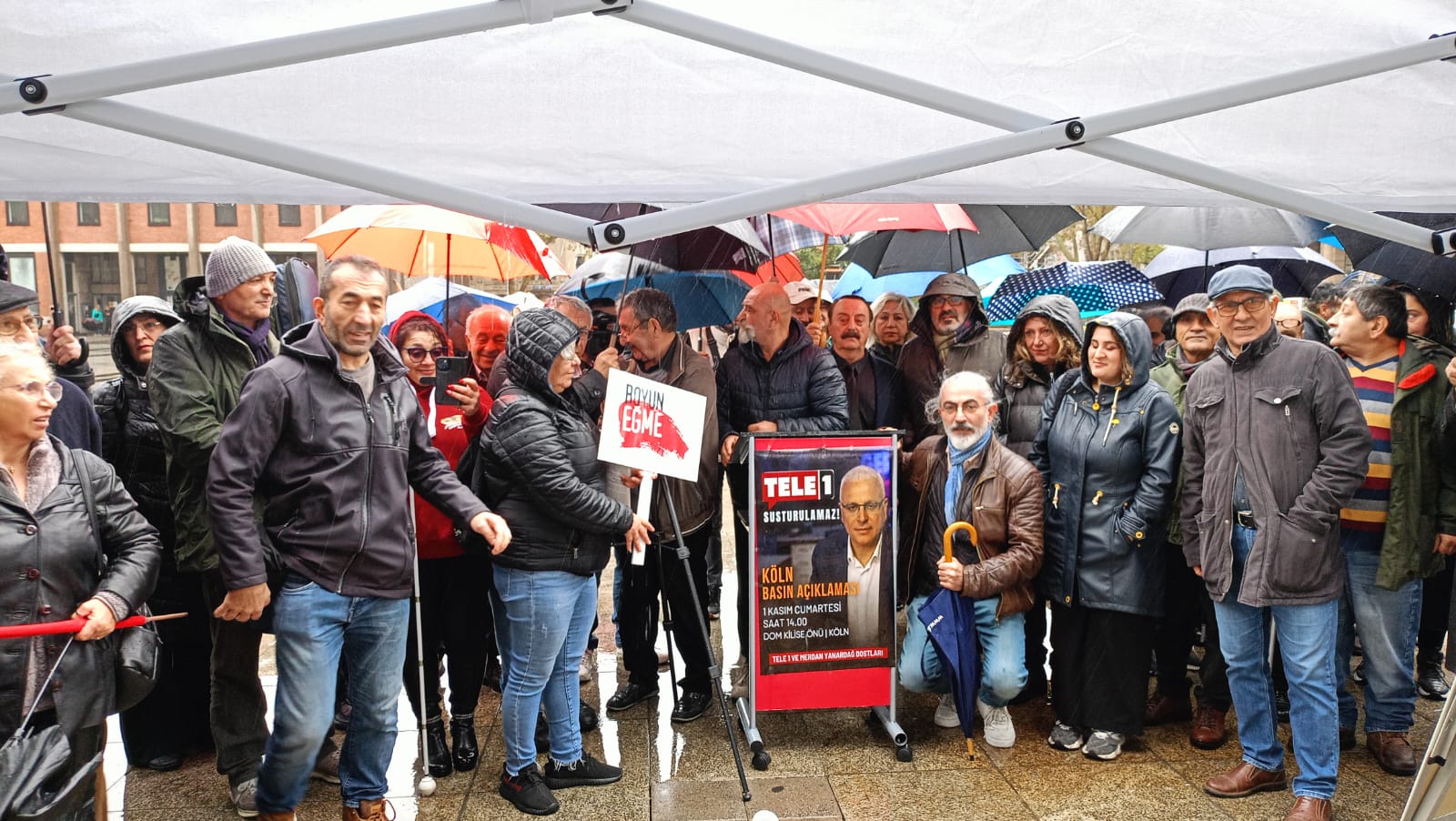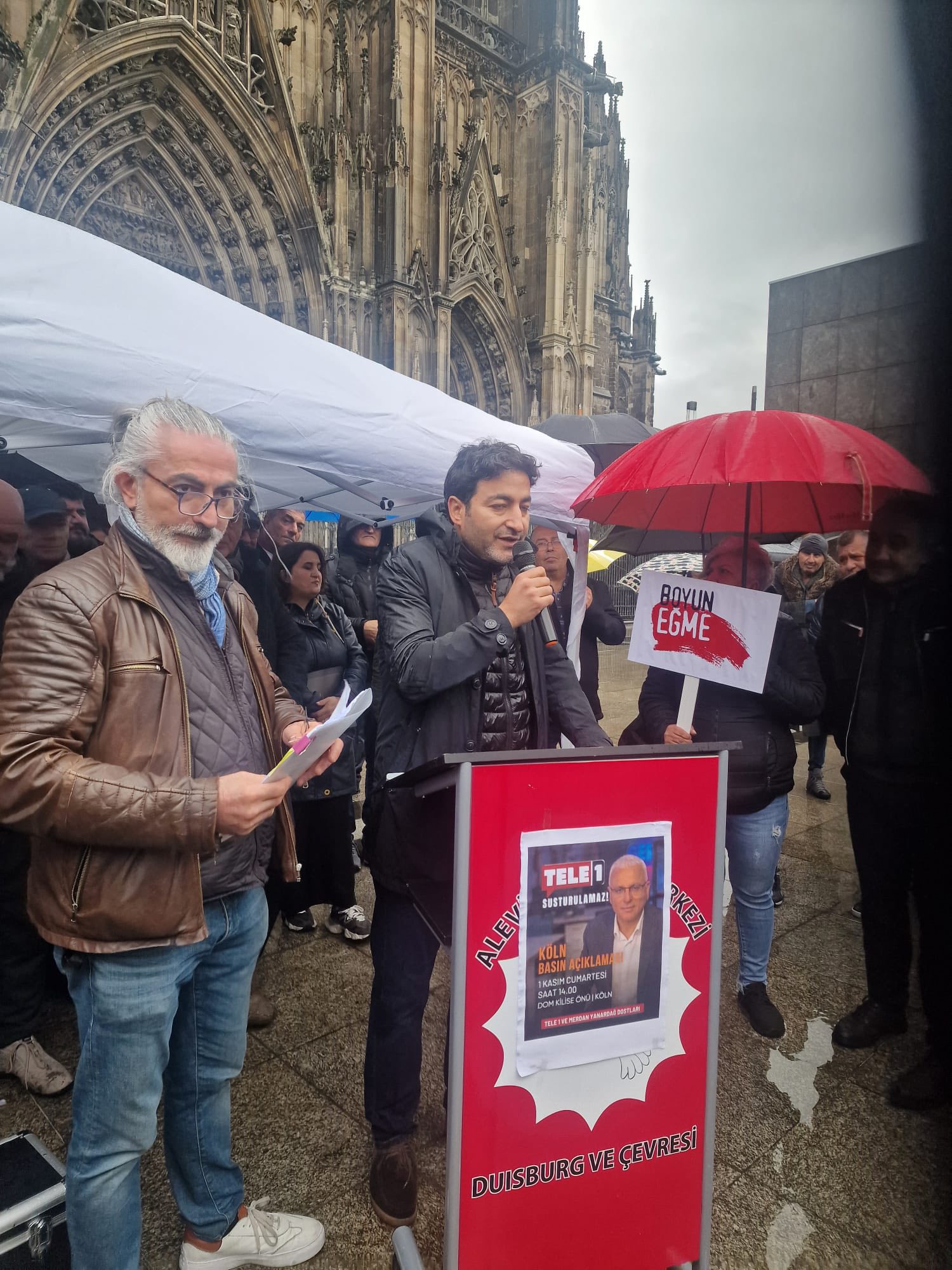 Mehmet Tanlı – Almanya⌉ Tele1 ve Merdan Yanardağ ile Dayanışma Platformu’nun düzenlediği Köln’deki basın açıklaması, ünlü Dom Katedrali önünde kötü hava koşullarına rağmen yaklaşık 200 kişinin katılımıyla gerçekleşti.